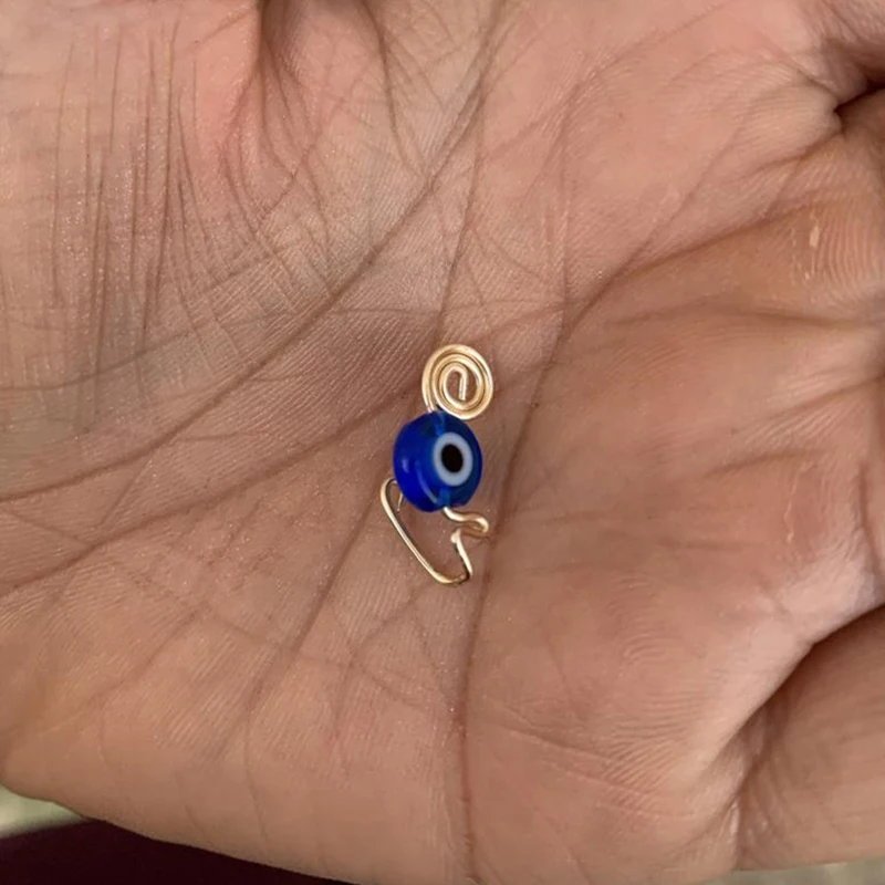 Позолоченное Настоящее Золотое кольцо в нос с медными бусинами, глазами демона и жемчужинами. Общий внешний вид изысканный и красивый, в европейском и американском стиле.
