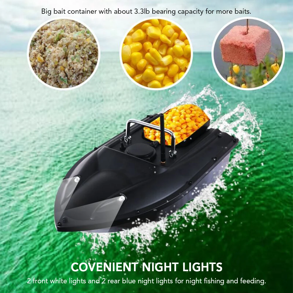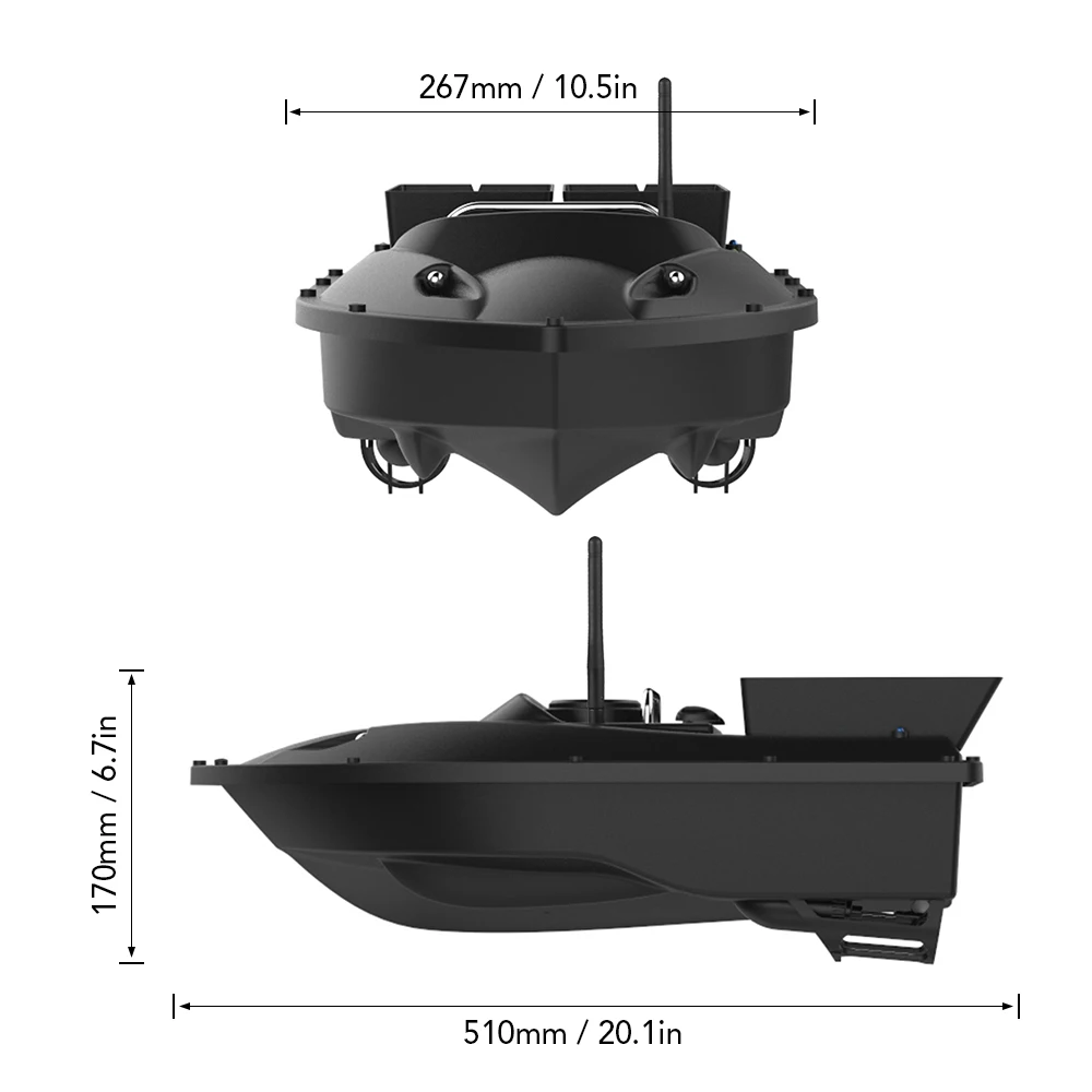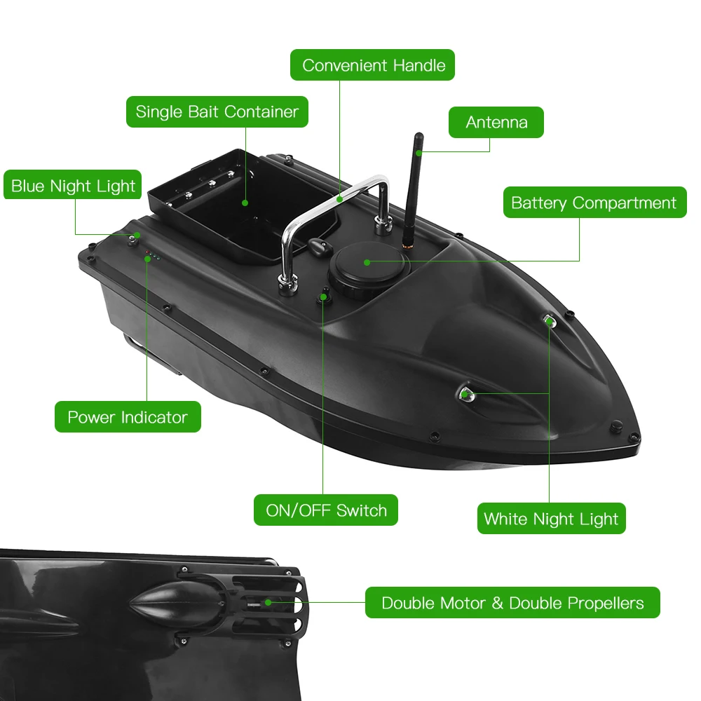 Беспроводное управление позволяет выпустить приманку далеко в озере, реке и водохранилище. Большой контейнер для наживки может вместить около 3,3 фунта наживки для всех игровых рыб. Простота в эксплуатации для любителей рыбалки или начинающих, а также для детей.