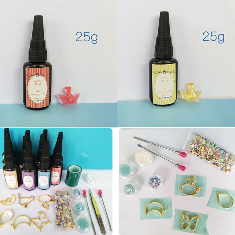 2. Эти УФ клеи отлично подходят для изготовления ювелирных изделий из смолы, аксессуаров для одежды, литых фигурок, инкапсулируемых предметов и т. д., подходят для открытой задней панели, открытой задней заготовки, небольших УФ-полимерных форм.