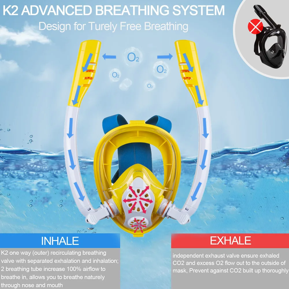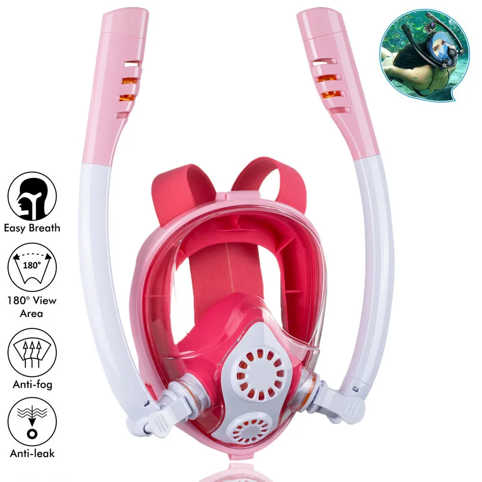 Детская маска для снорклинга, двойная трубка, полностью сухая силиконовая маска для дайвинга, для плавания, подводного снорклинга, маска для дайвинга, снаряжение для очков