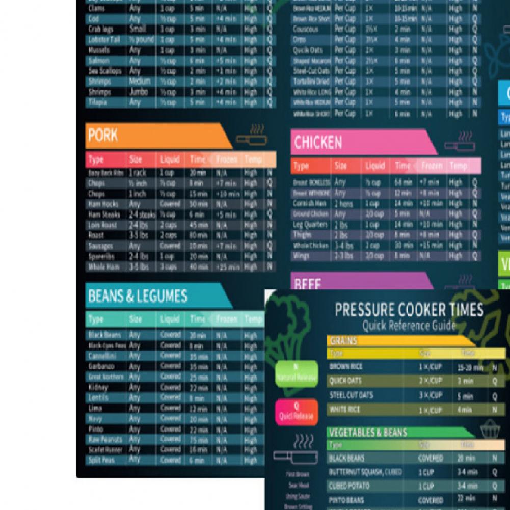 Диаграмма времени приготовления пищи может предложить вам четкое текстовое описание и яркие изображения пищи, такие как овощи, говядина, курица, которые правильно засекречены и легко читаются для начинающих в приготовлении пищи.