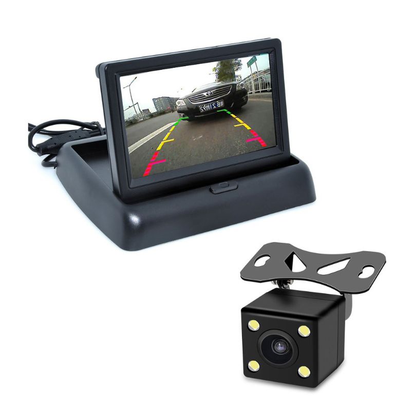 Резервное копирование Камера и монитор Комплект для автомобиля, универсальный Водонепроницаемый заднего вида 8 светодиодный Ночное видение Камера + 4,3 дюймов TFT ЖК-дисплей Складной автомобильный монитор заднего вида и аксессуары (12V).
