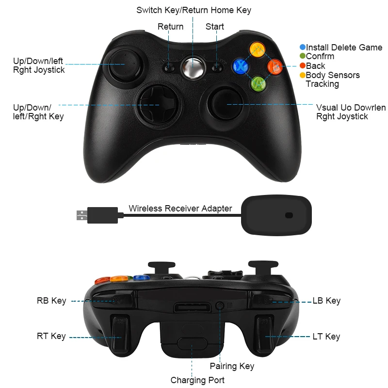 -Этот игровой контроллер имеет превосходное автоматическое соединение. Использование высокопроизводительных чипов, геймпад в игре имеет лучшую стабильность, высокоточные рокеры 360 °, задержка почти равна нулю, поддержка Xbox 360 и ПК-игр