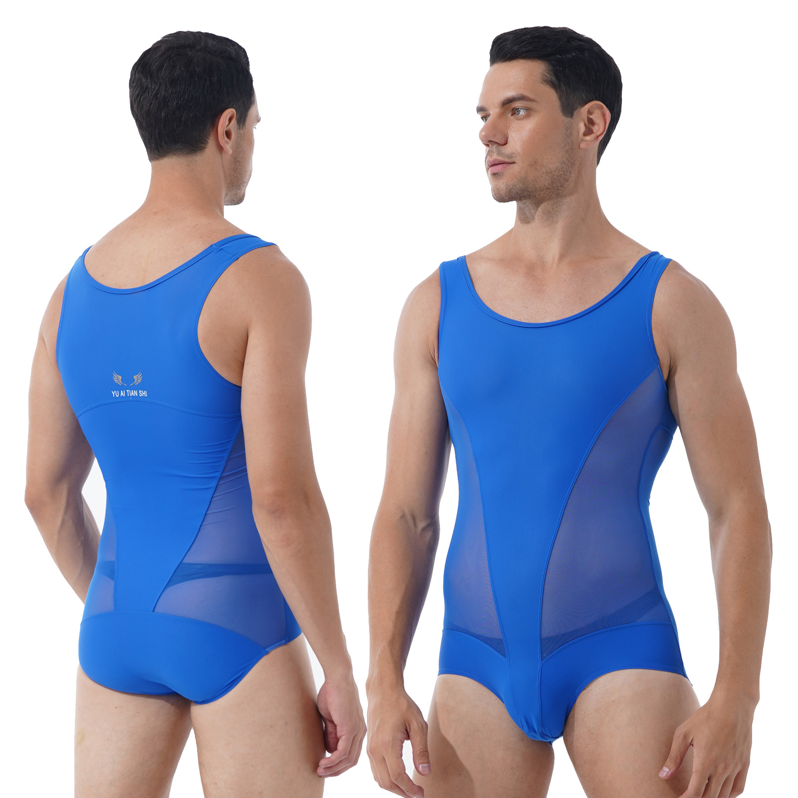 Прозрачный сетчатый лоскутный спортивный Боди без рукавов, Цельный купальник Leatord для мужчин.