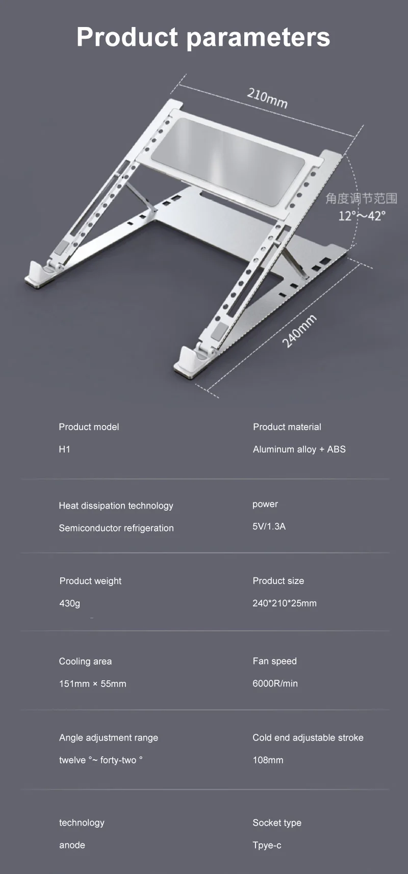 Алюминиевая Регулируемая подставка для ноутбука для Macbook, компьютера, ПК, iPad, планшета, подставка для ноутбука, охлаждающий вентилятор, подставка для ноутбука