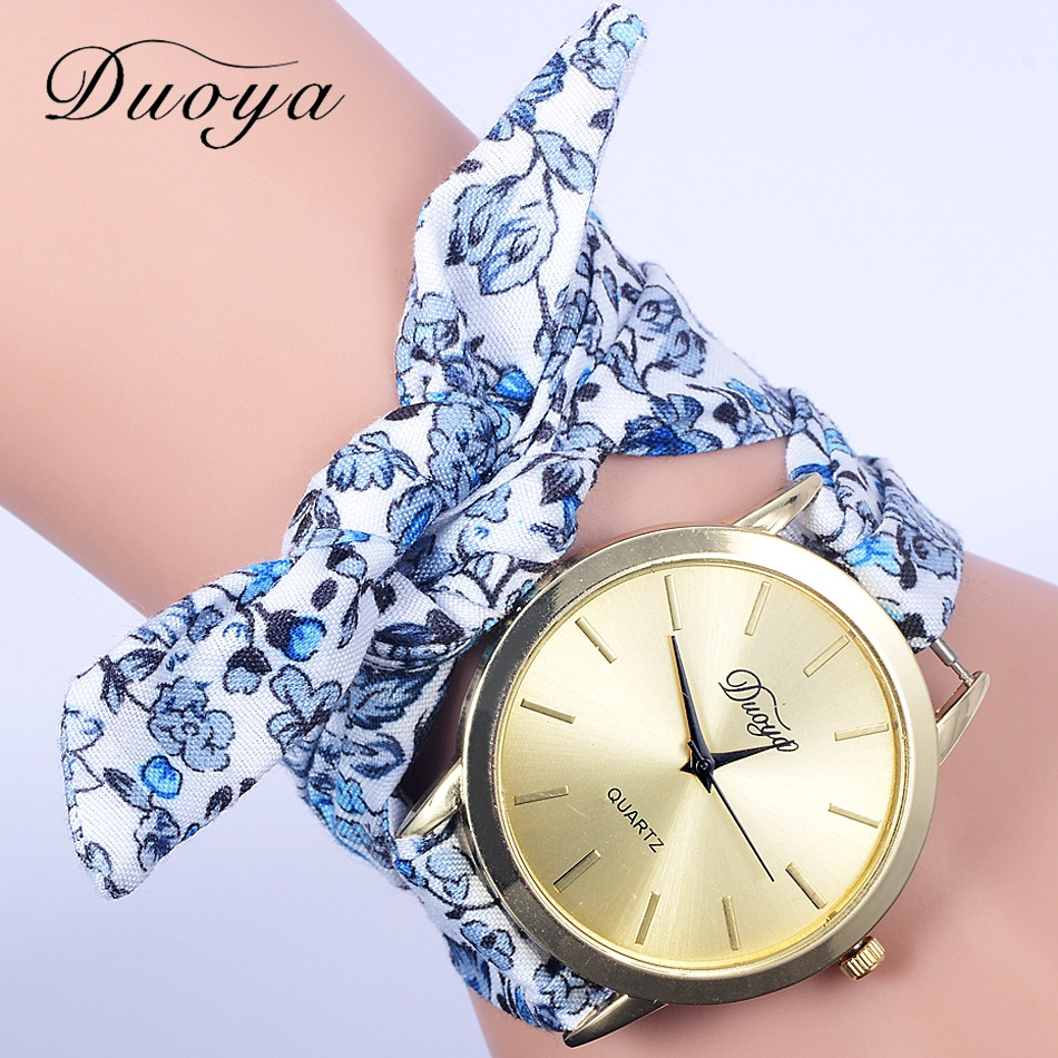 Женские наручные часы Duoya, вечерние повседневные часы с цветочным принтом и бантом
