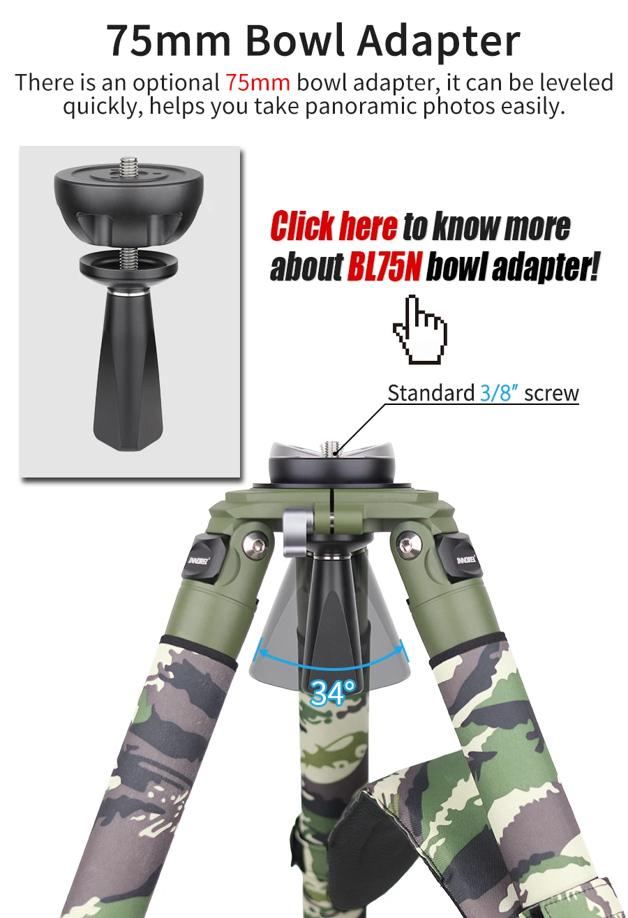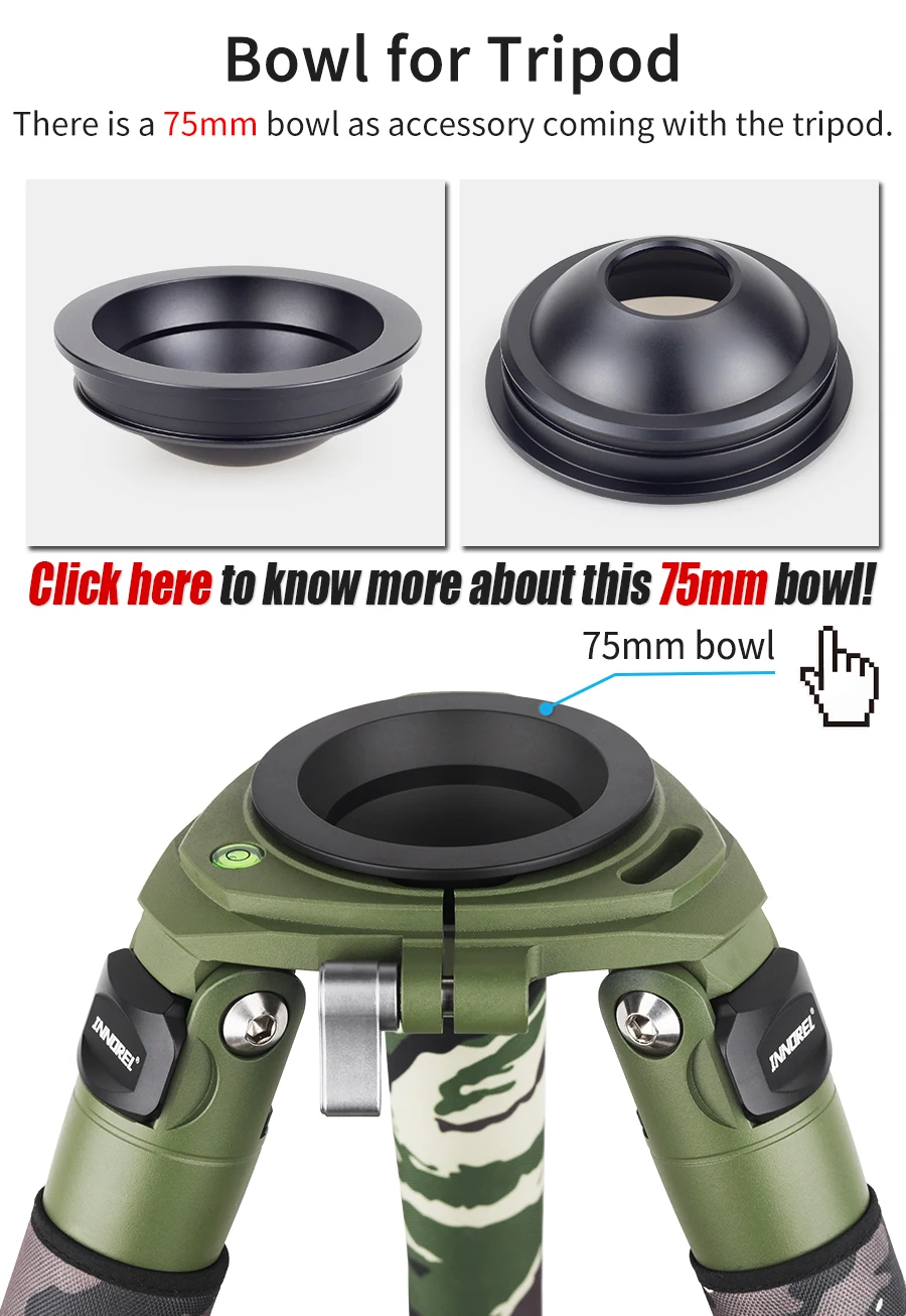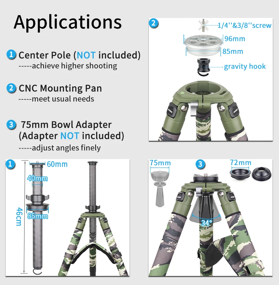 【Профессиональный дизайн】 Верхний сверхмощный штатив из углеродного волокна имеет твердую анодированную монтажную сковороду из алюминиевого сплава, негабаритный крючок и установочный винт для надежной фиксации головки штатива. Он совместим с чашей 75 мм или 100 мм, а также с другим оборудованием, которое можно прикрепить непосредственно к штативу, таким как головки для жидкости, Шаровые Головки и т. д.