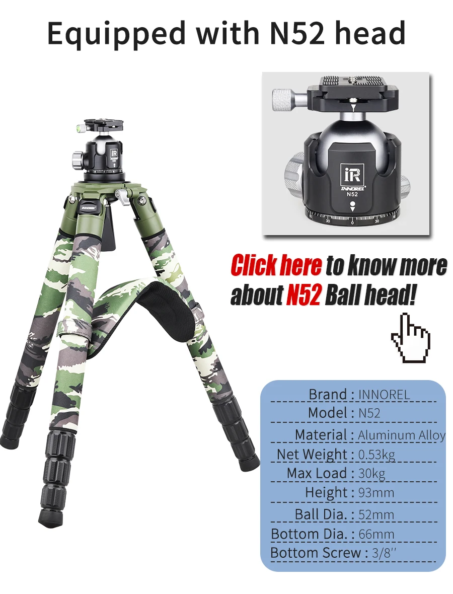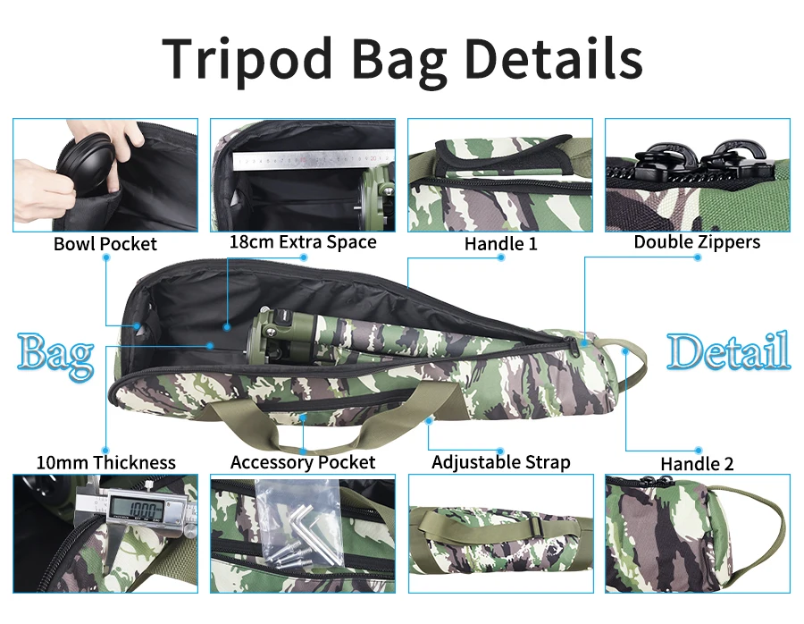 【Съемный рукав】 Три зеленых камуфляжных рукава съемные, а плечевая накладка позволяет удобнее перемещать штатив при съемке.