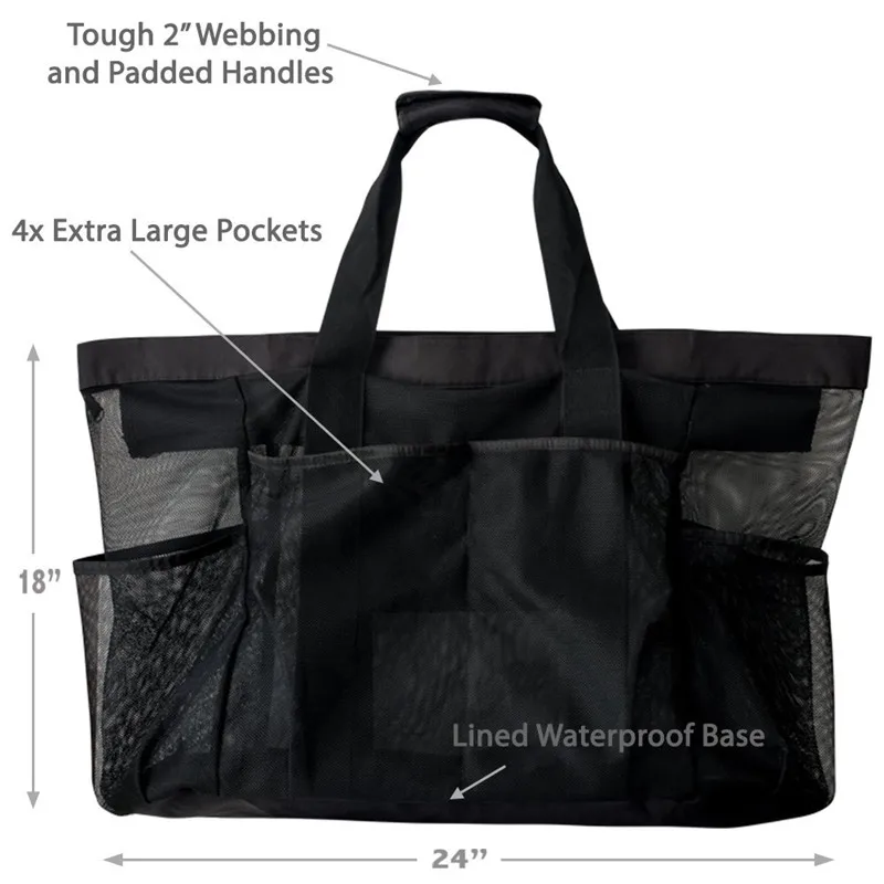 1. Большое пространство для хранения: 18 дюймов в длину x 18 дюймов в высоту x 12 дюймов в ширину сетчатая пляжная сумка достаточно большая, чтобы носить все, что вам нужно