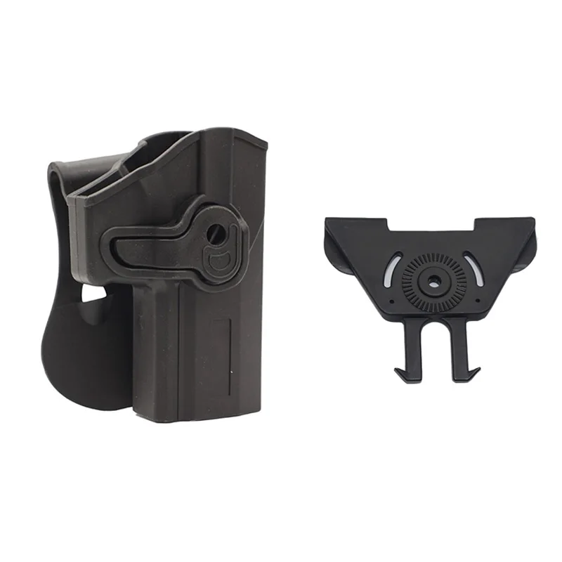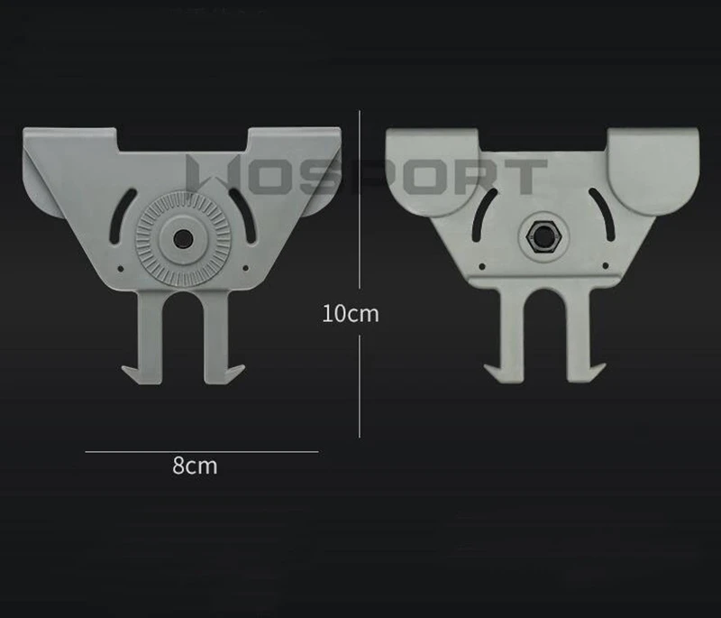 Корпус кобуры и несущая платформа соединены с шестернями, а корпус кобуры поворачивается на 360 градусов, что позволяет легко регулировать положение переноски. Совместим с 4 разными платформами для переноски-веслом (стандартным), зажимом для ремня, MOLLE и платформой для ног. Все несущие платформы можно заменить одним винтом. Rs можно носить с собой в повседневном использовании, занятиях спортом на открытом воздухе, тренировках и соревнованиях по стрельбе из Нормана, даже в условиях быстрого движения кобура будет надежно прикреплена к ремню, ножке или системе MOLLE.