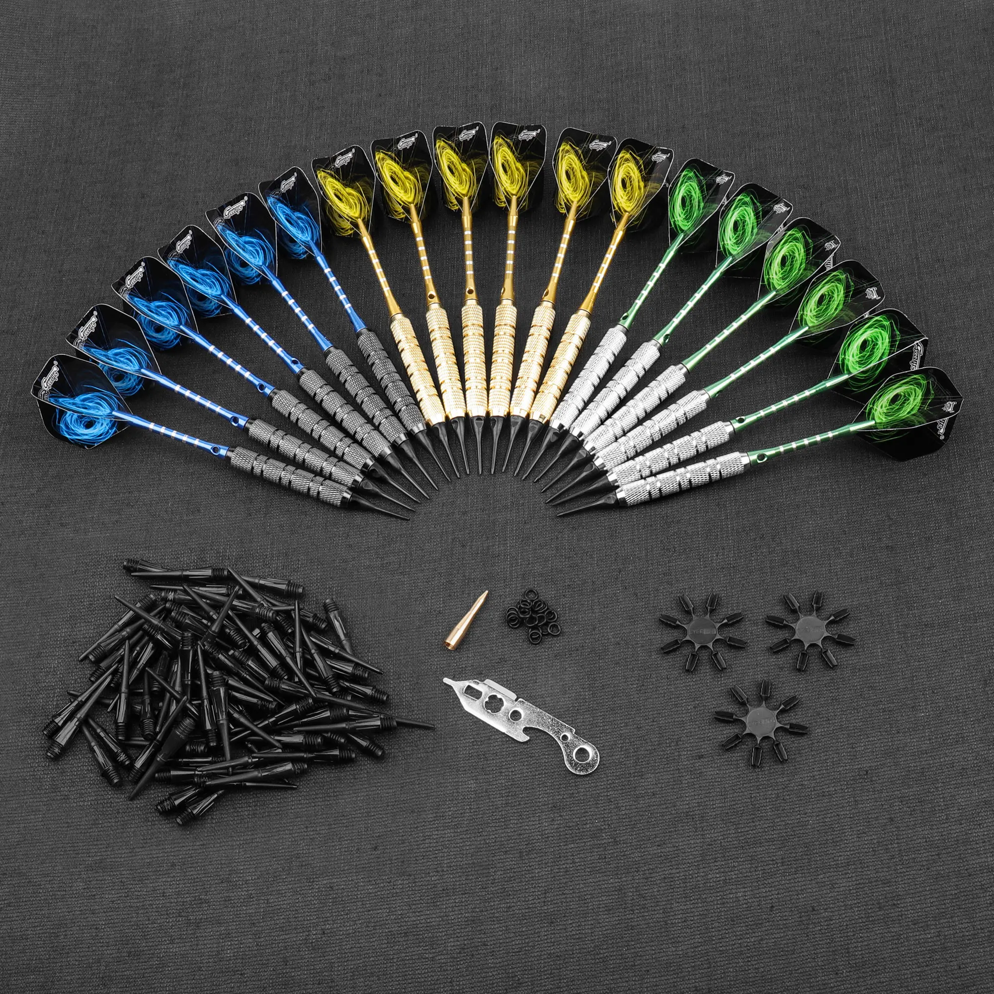 1x18 шт (6 комплектов) мягкие наконечники дартс, 3 шт пластиковый Дартс защита полетов, 2 шт инструмент дартс, 20 шт резиновое кольцо, 50 шт Мягкие наконечники для дротиков