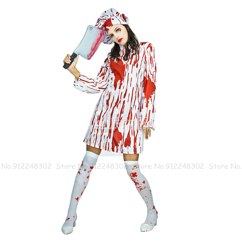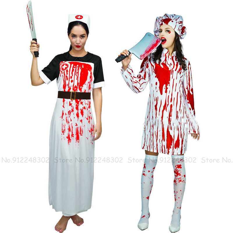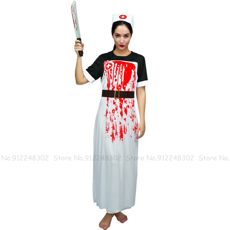 Женское платье с привидениями крови для медсестры из больницы зомби, карнавальные вечерние костюмы на Хэллоуин, страшная униформа для ролевых игр, Женский карнавальный костюм для девочек