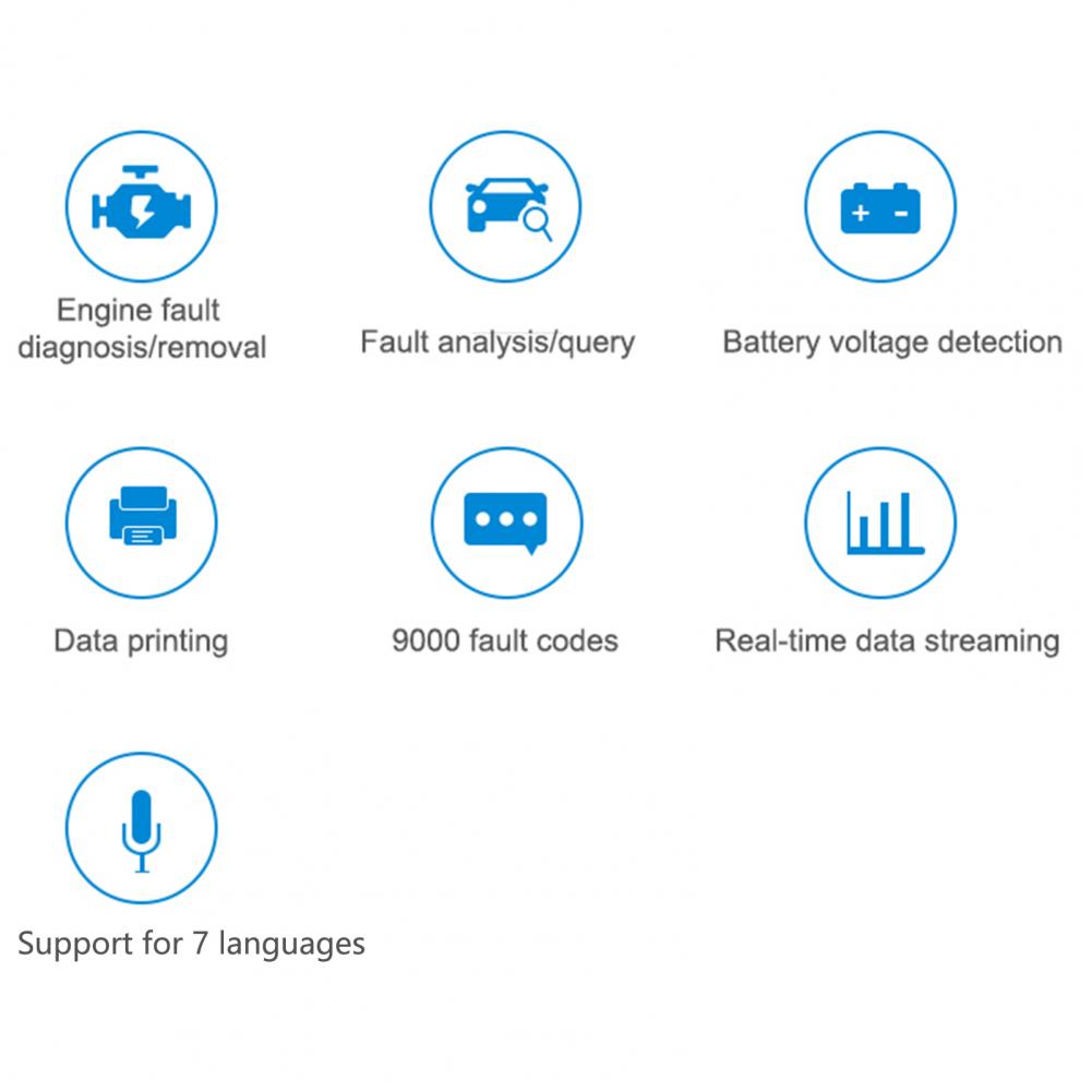 Встроенный около 9000 кодов неисправностей, сканер является быстрым и удобным для вас, чтобы сделать запрос и анализ.