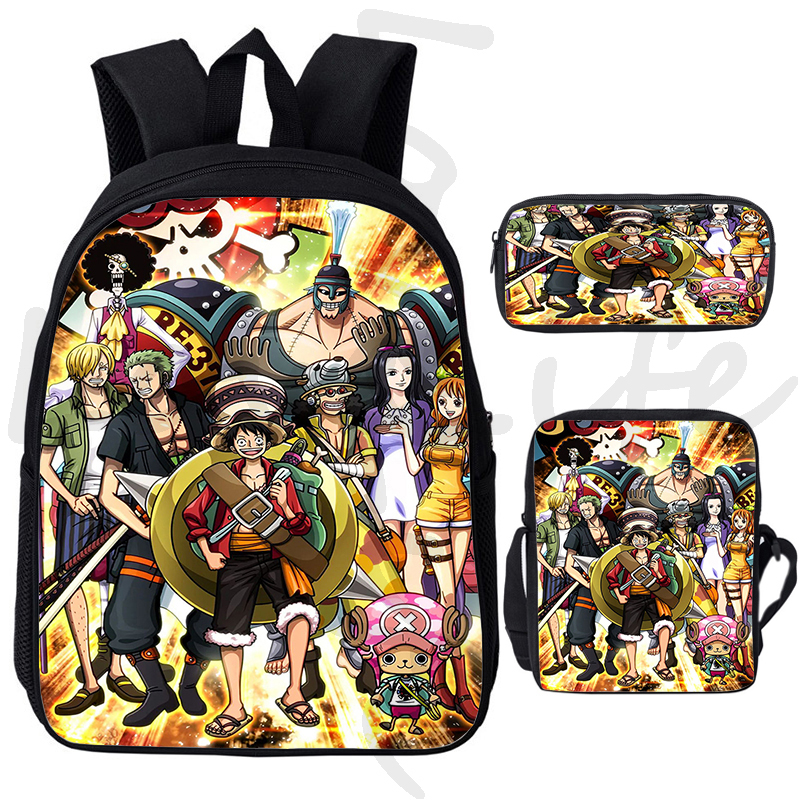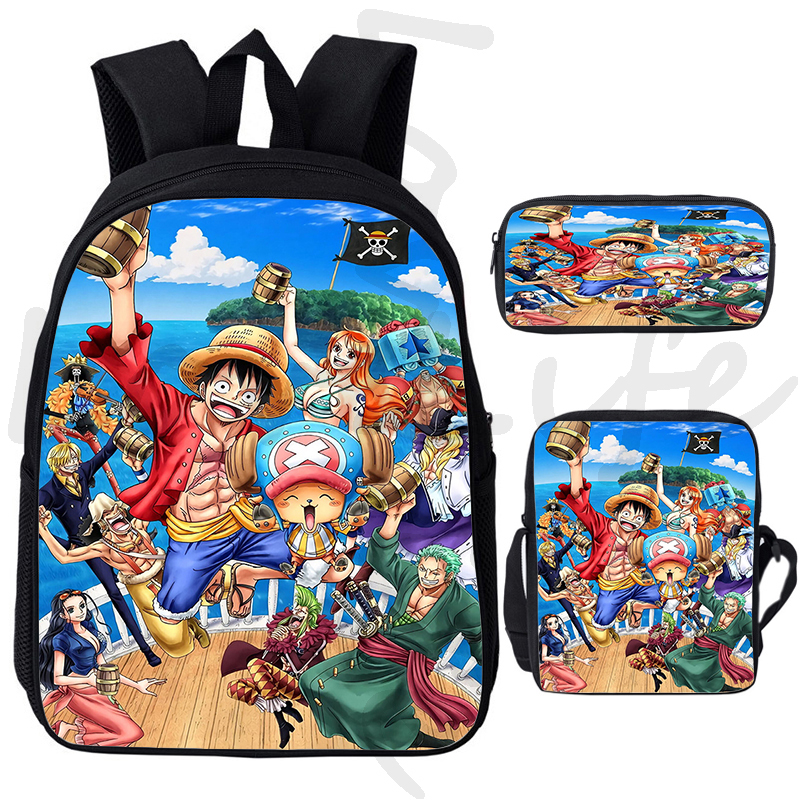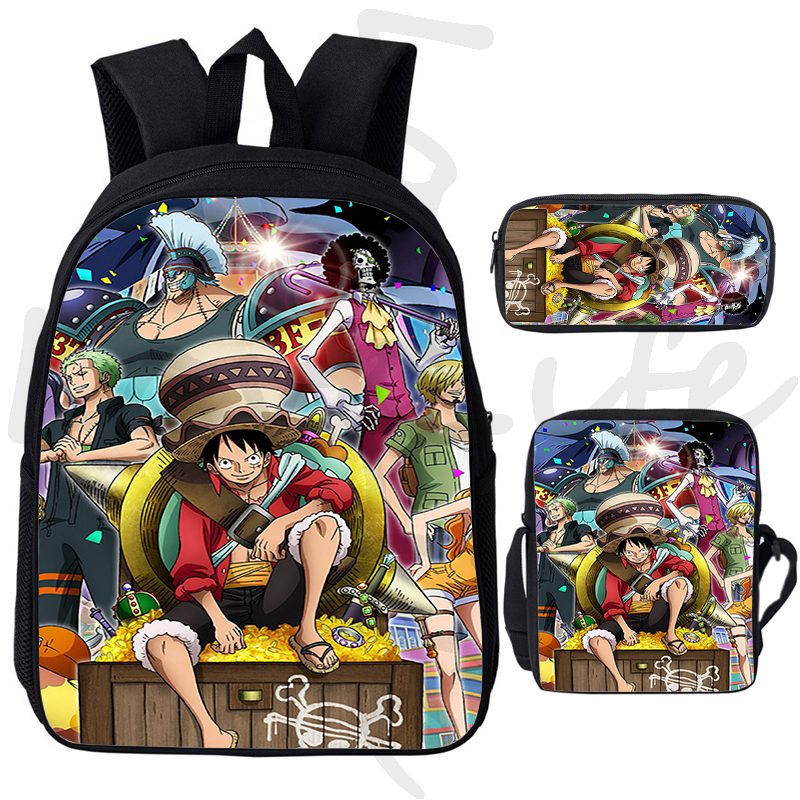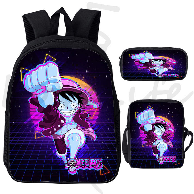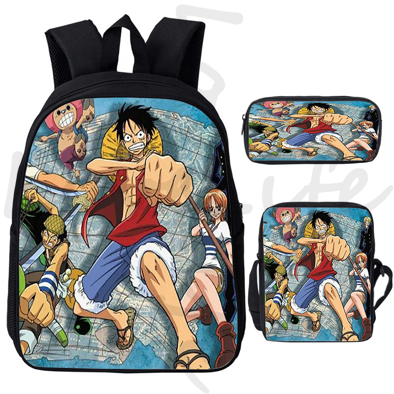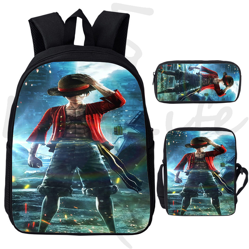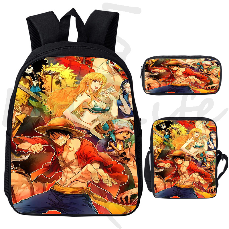 3 комплекта, цельный аниме рюкзак для мальчиков, студенческий 3D принт, школьные сумки Luffy Zoro, рюкзак на молнии, рюкзак для школы, Mochila