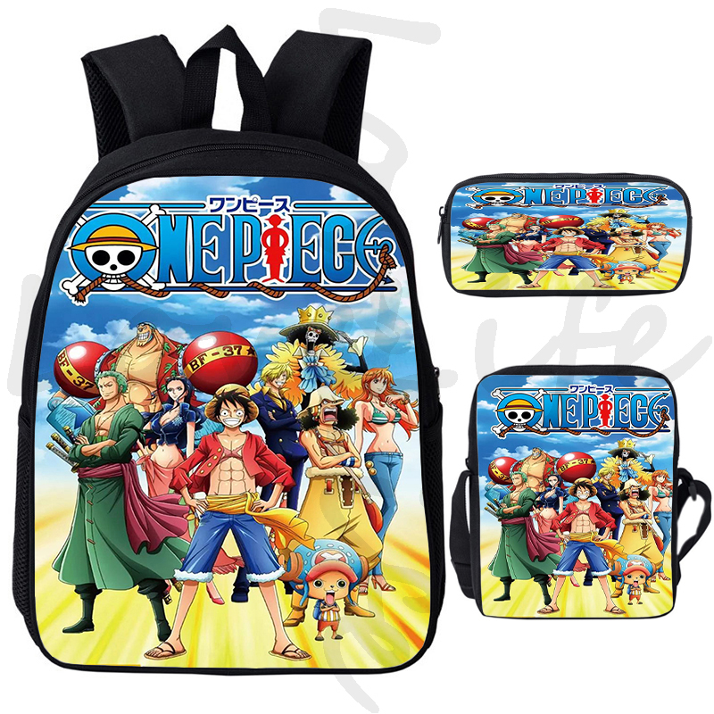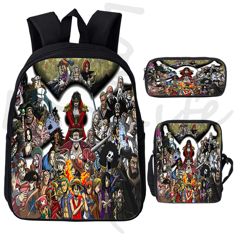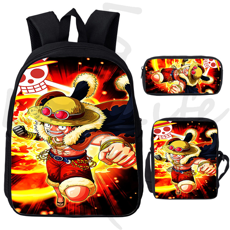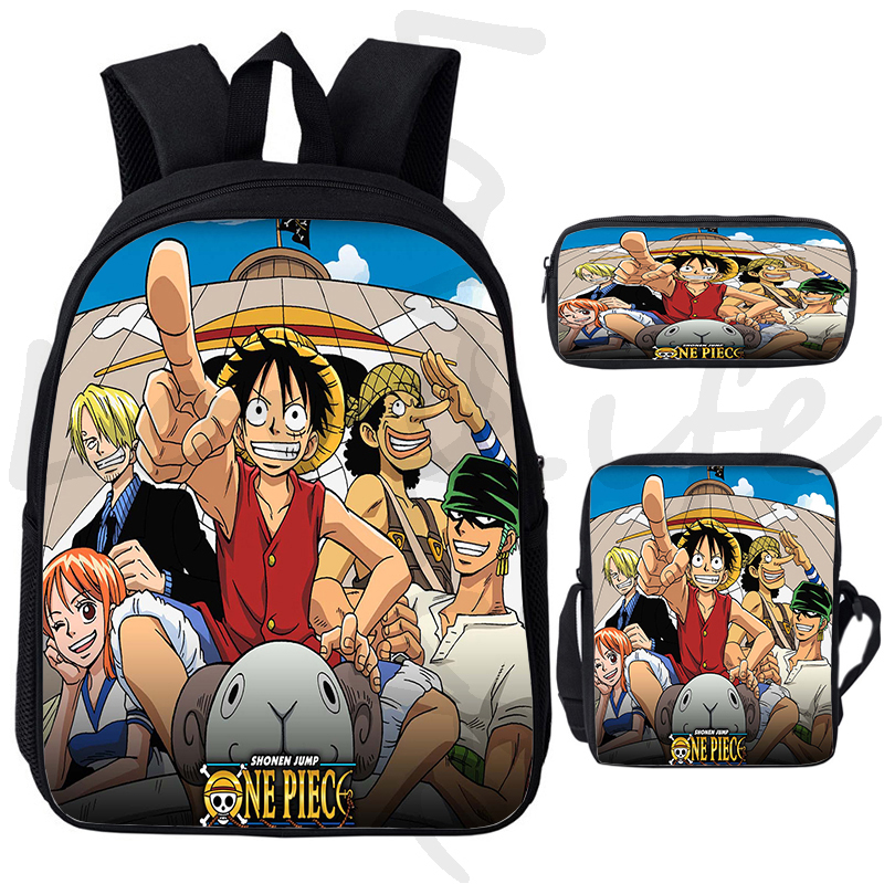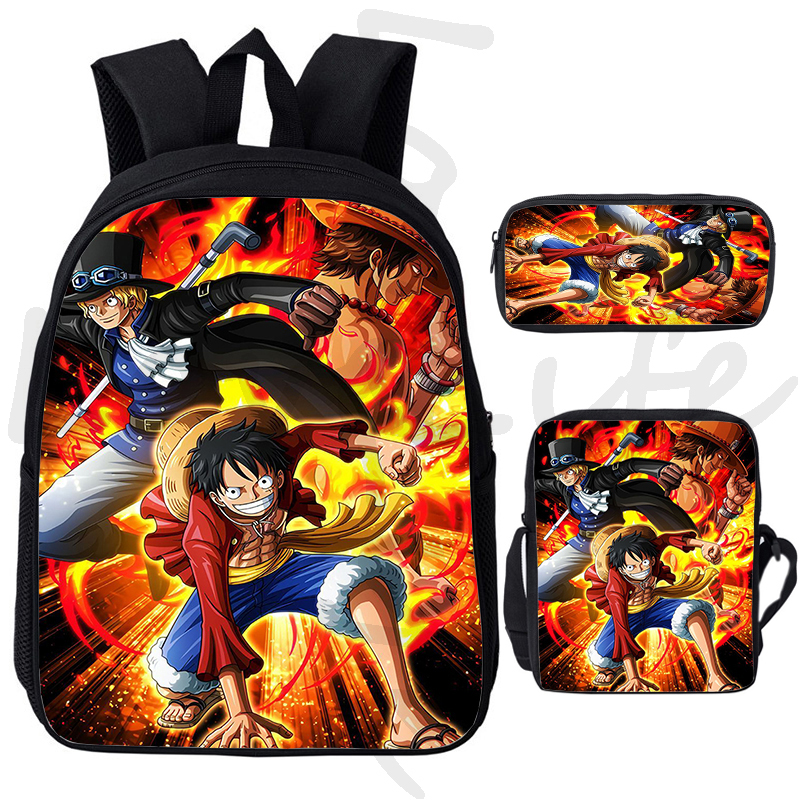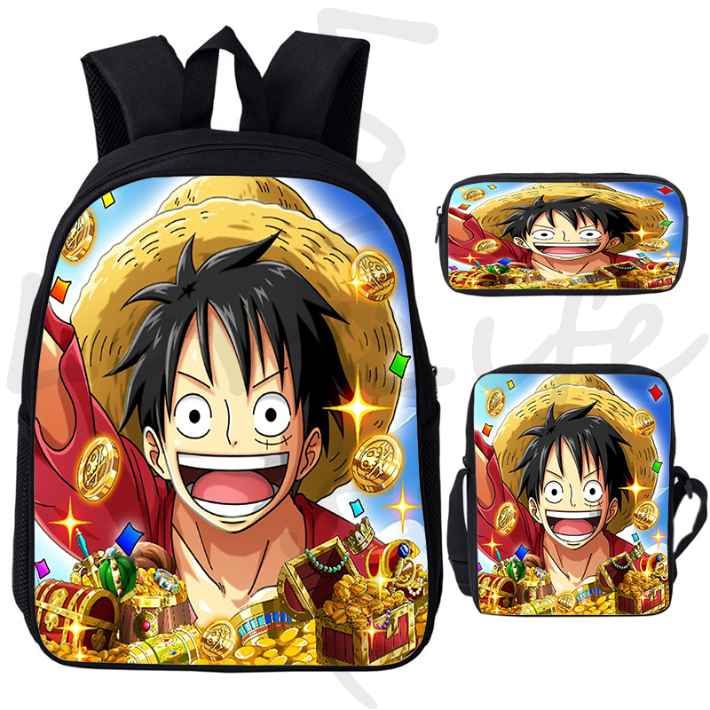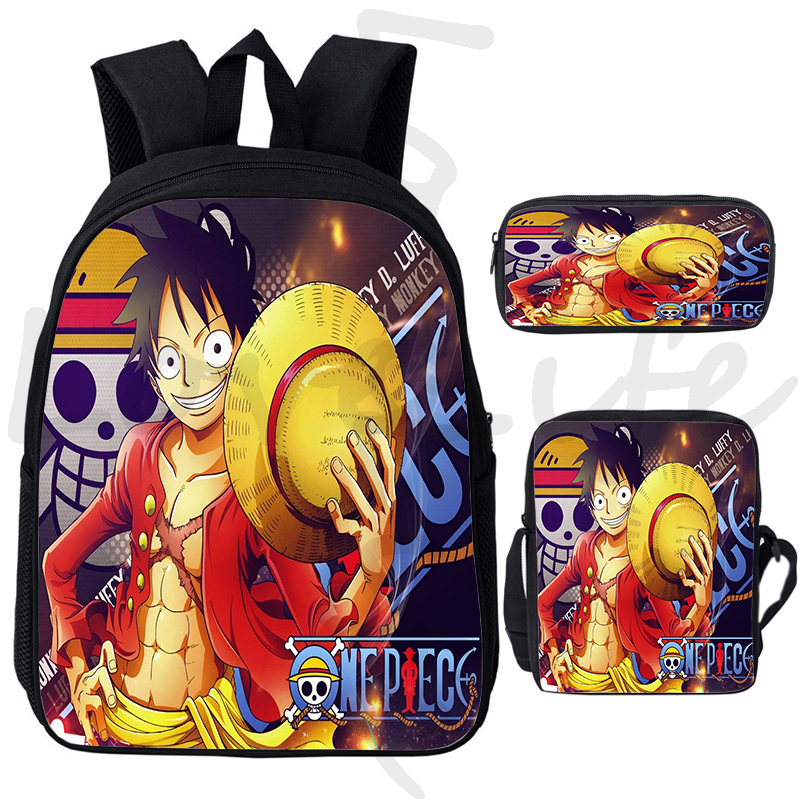 3 комплекта, цельный аниме рюкзак для мальчиков, студенческий 3D принт, школьные сумки Luffy Zoro, рюкзак на молнии, рюкзак для школы, Mochila
