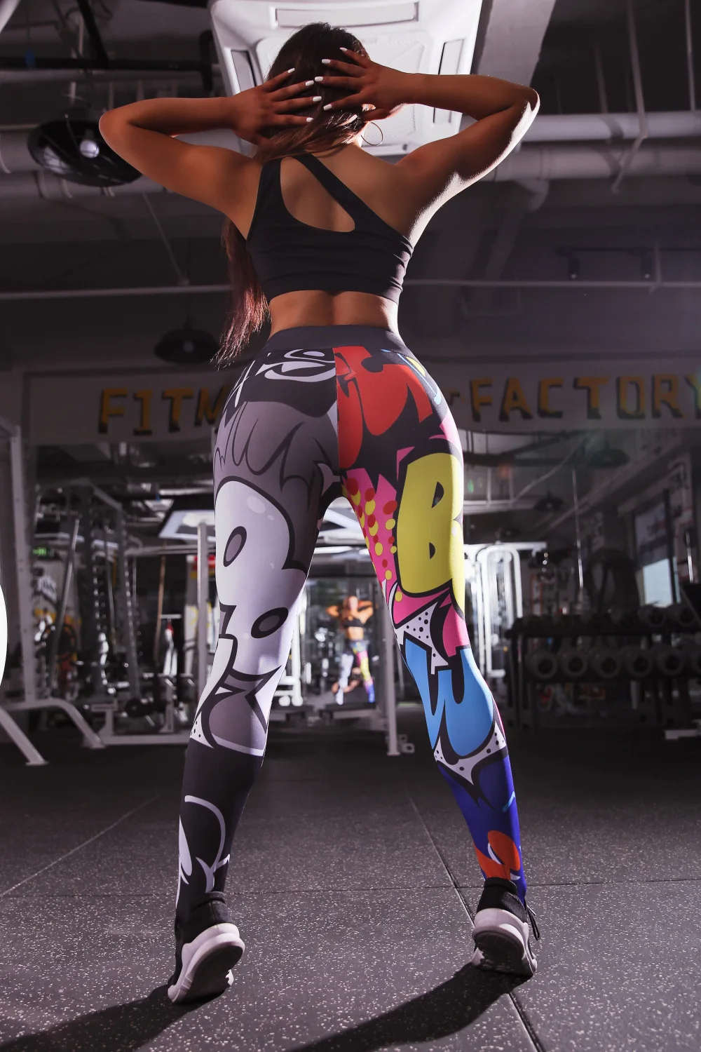 Женские колготки для йоги с 3D принтом, модные штаны для фитнеса с персонажами из мультфильмов, дышащие спортивные колготки с высокой талией для бега в тренажерном зале