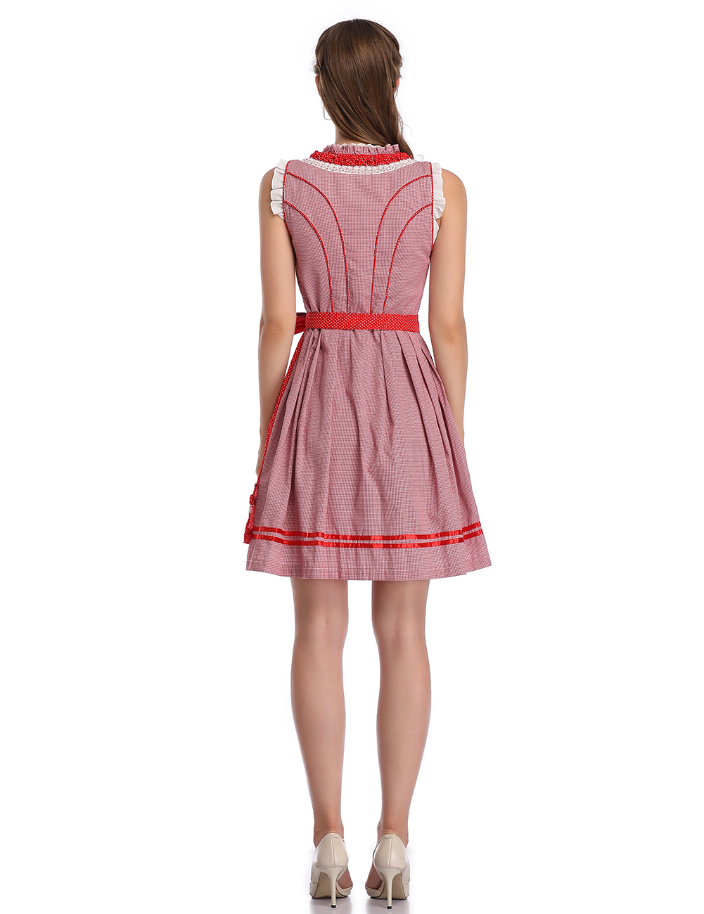 Традиционный дизайн: классический ретро немецкий дирндль набор/классическая вышивка/дизайн без рукавов/металлическая пряжка с поясом/Стиль квадратной шеи/узор в клетку/ТРАПЕЦИЕВИДНОЕ ПЛАТЬЕ/длина до колена.
