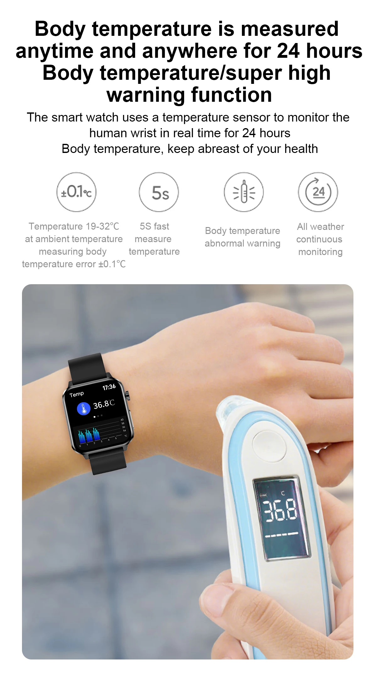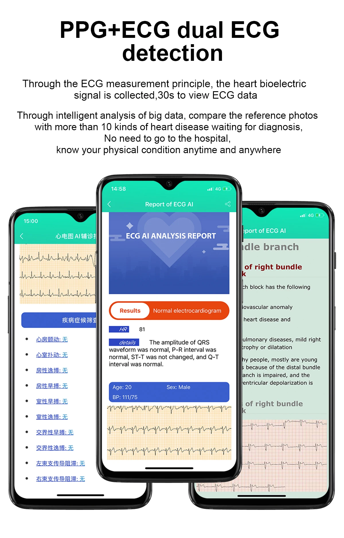 Особенности: независимый точный кислород в крови, температура тела, электрокардиограмма, частота дыхания, кровяное давление, пульс, кислород в крови, медицинская диагностика AI, уход за близкими и друзьями
