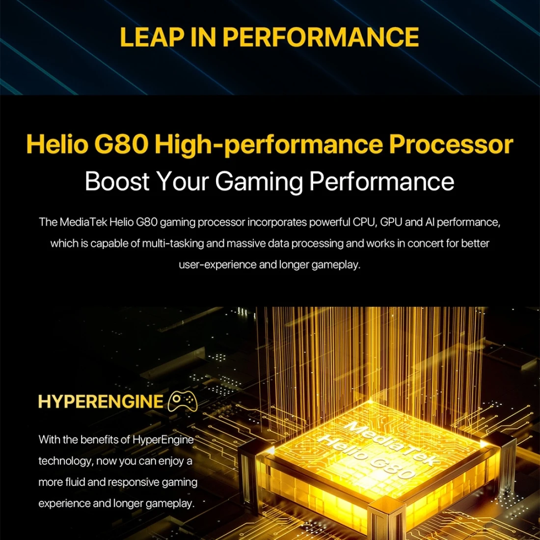Процессор: MTK Helio G80 Восьмиядерный до 2,0 ГГц