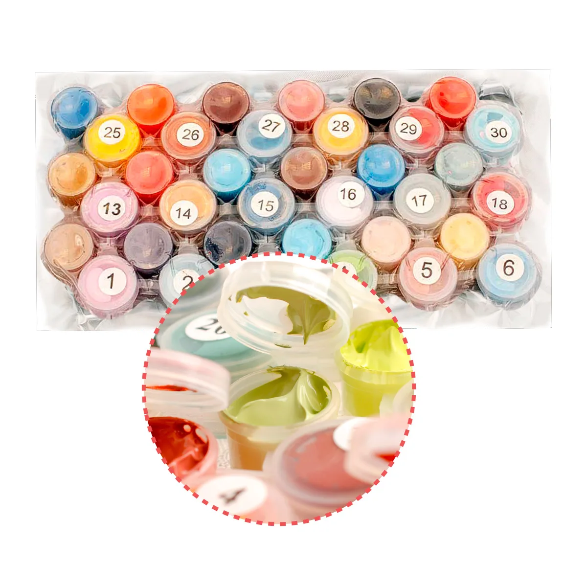 Добавьте яркий акцент своему изображению! В наборе к набору идет дополнительная Серебристая краска, после завершения работы по вашему выбору Подчеркните детали рисунка тонкими серебристыми мазками.