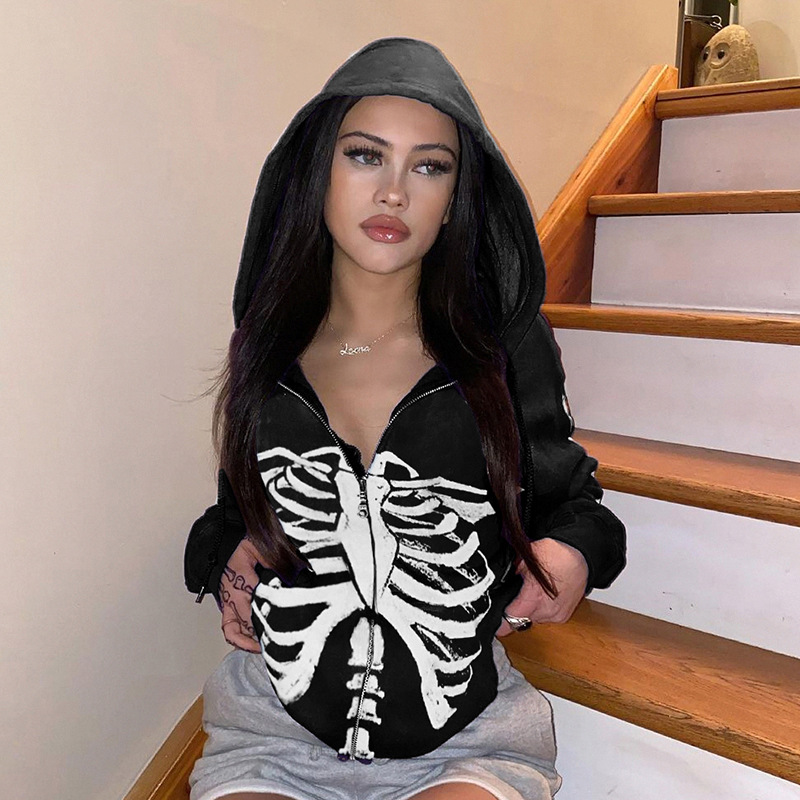 Готический укороченный свитер с принтом черепа, женские осенние пуловеры, черные свободные толстовки в стиле панк, одежда Alt, повседневные топы с длинными рукавами