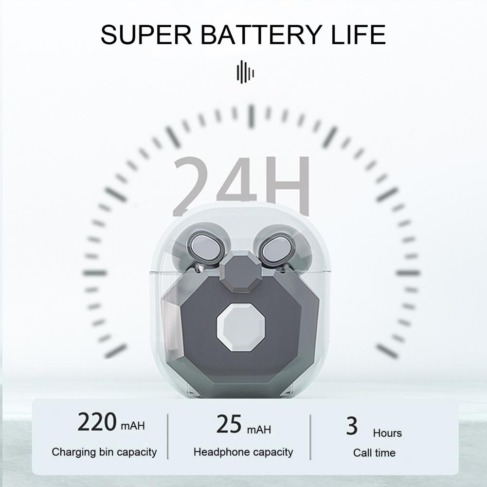 2Pcs Nano3 Wireless Earbuds In-ear Touch Control Noise Reduction Waterproof Transparent Bluetooth-compatible TWS Earphones for Gaming