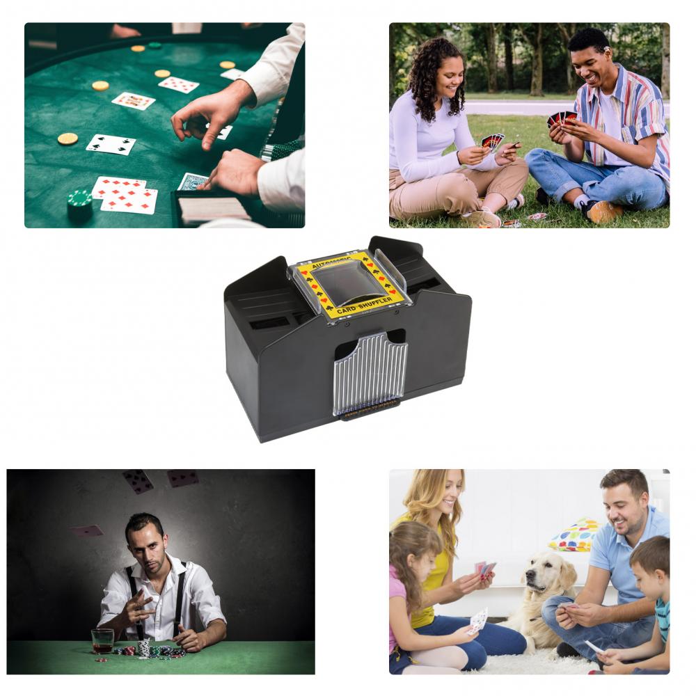 4 колоды игральных карт можно аккуратно перемешивать одновременно, что очень эффективно и экономно.