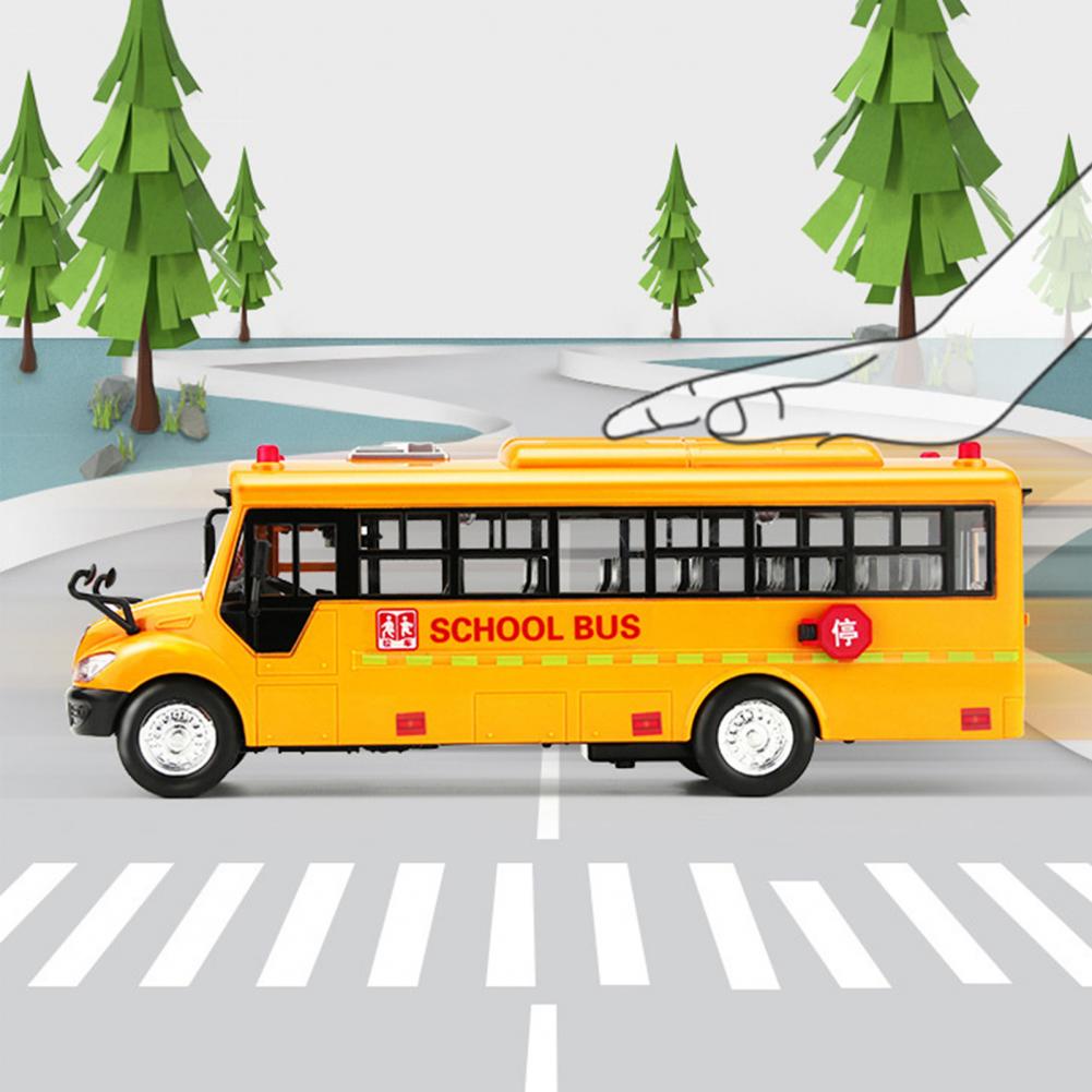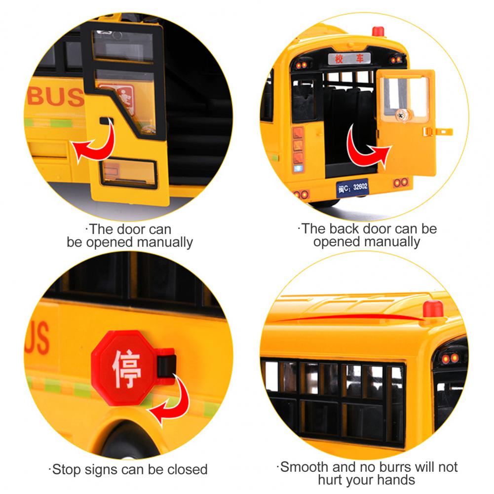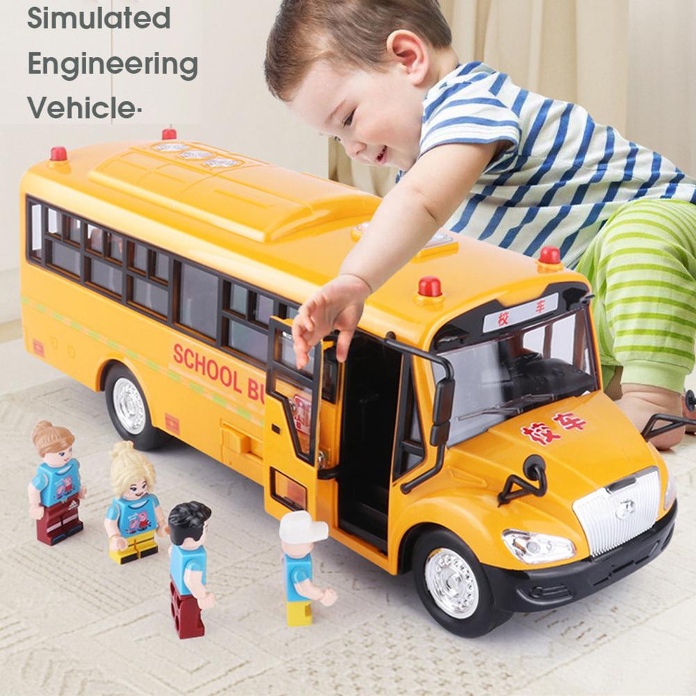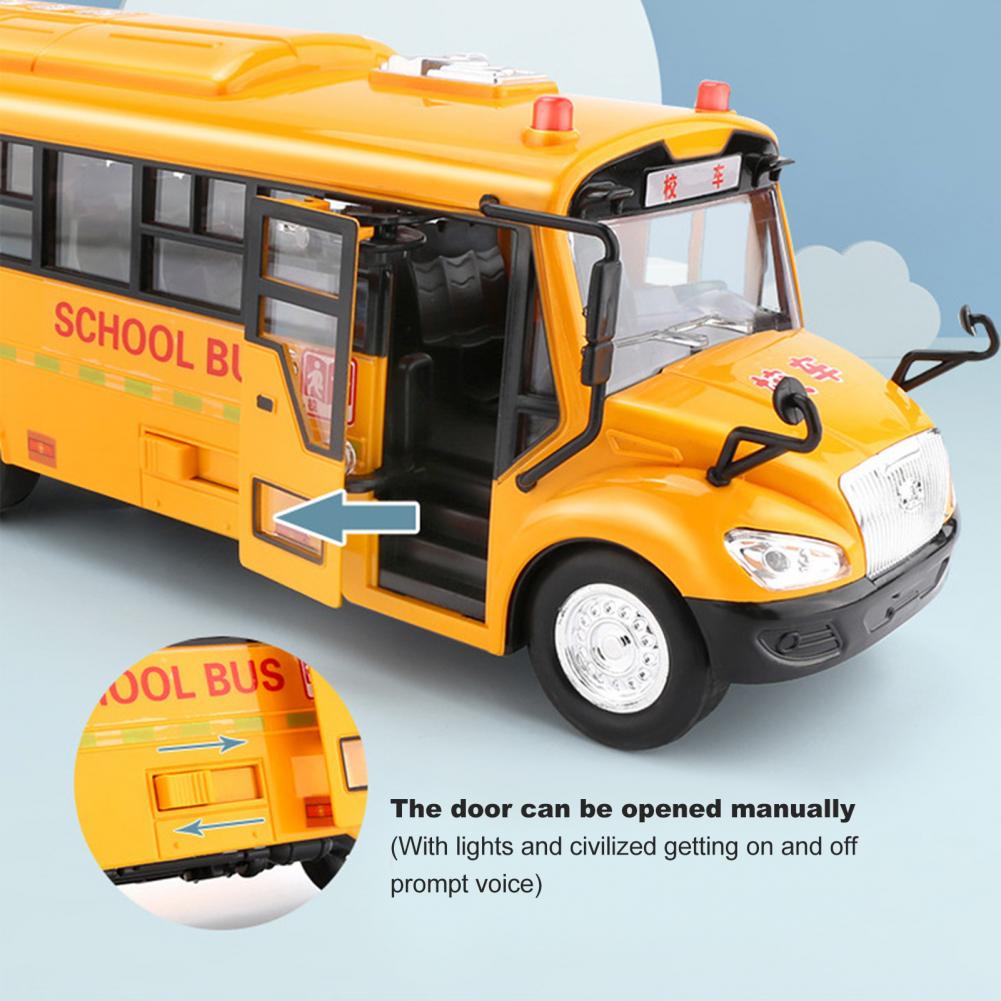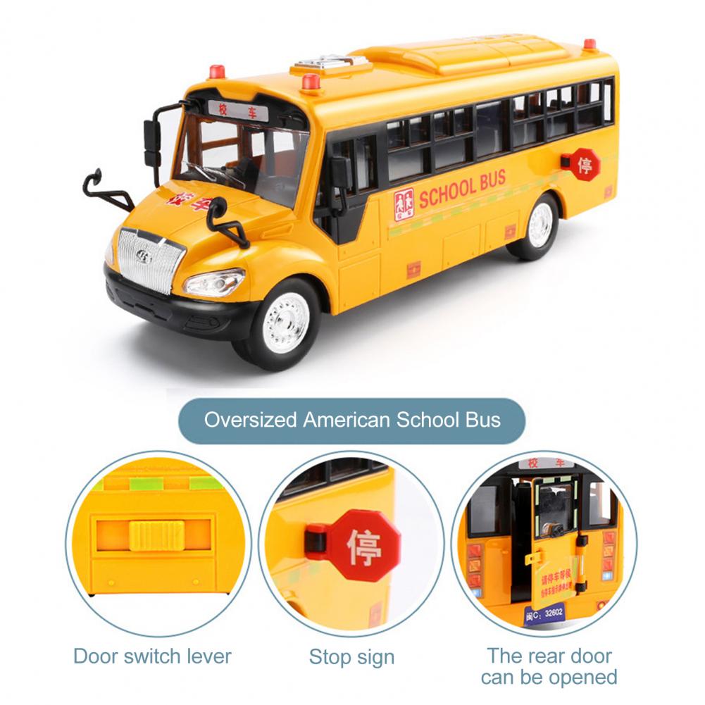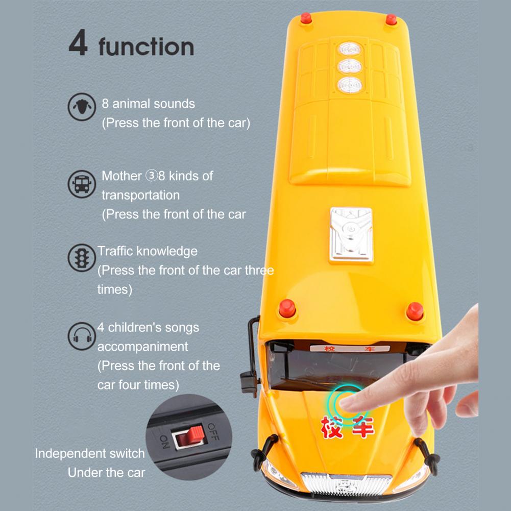 Это образовательный автобус с гладкой кромкой, с открывающимися дверцами, зеркалом заднего вида, дверным переключателем, карточкой для парковки и дизайном школьного автобуса большого размера, которая также имеет музыкальную и световую функцию, чтобы привлечь детей, чтобы играть и веселиться.