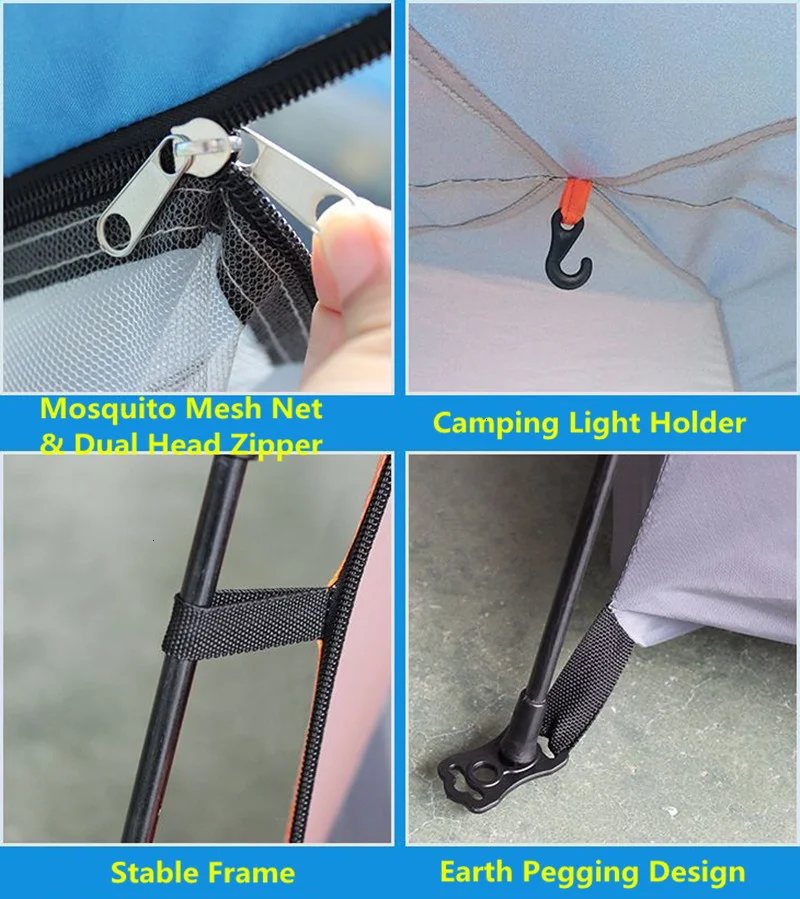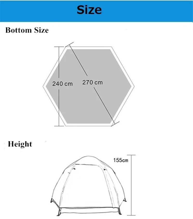 1. Двухслойная палатка с полным покрытием, суперводонепроницаемая полиэфирная ткань 210T с полиуретановым покрытием.