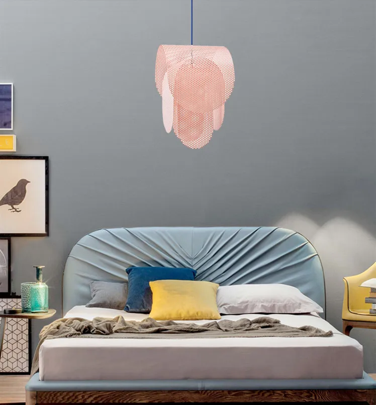 Перфорированный металлический подвесной светильник, Современный Креативный дизайн, детская комната, спальня, розовая лампа, ресторан, детский подвесной светильник Home Deco