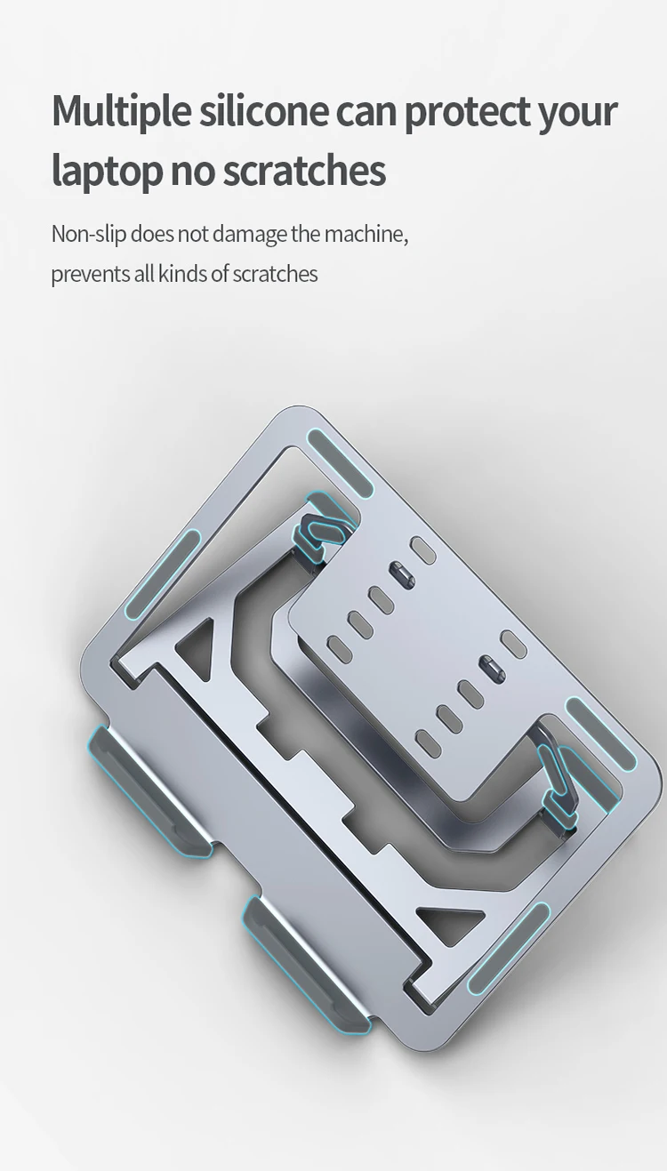 [Тепловыделение] высококачественный материал из алюминиевого сплава, поглощение тепла и вентиляционное отверстие на держатель для ноутбука, резиновая прокладка делает ноутбук немного выше, может эффективно помочь теплоотводу ноутбука.