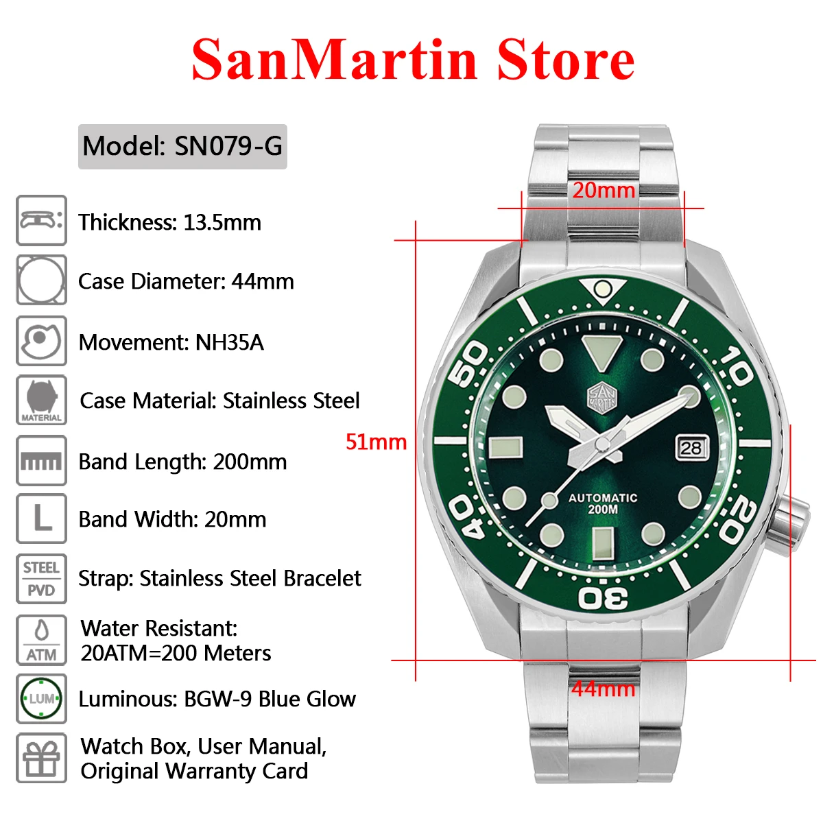 Зеленый циферблат Sunray