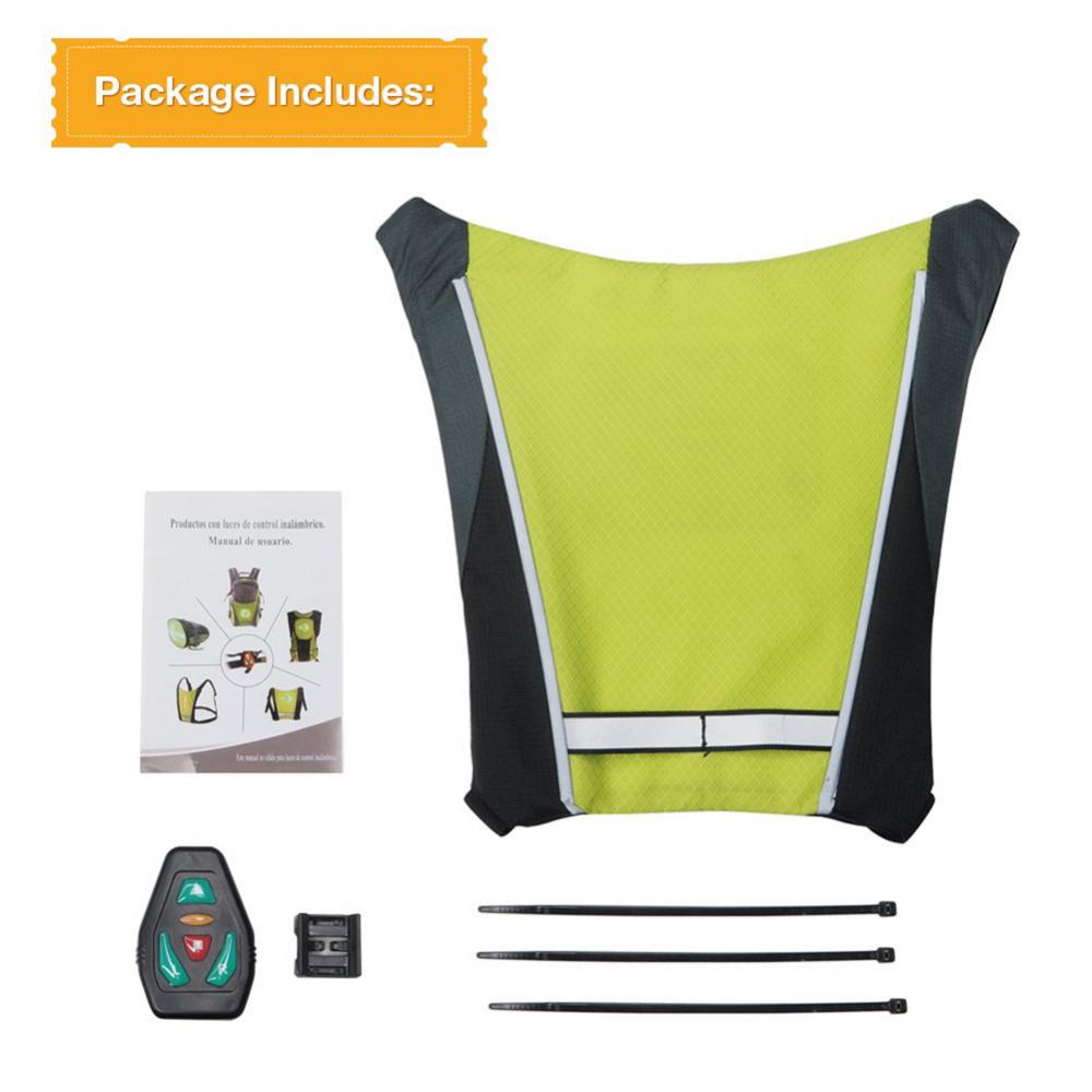 This reflective LED bike vest is equipped with reflective strips and LED lights. The LED will respond to the signal received from the remote control, which will remind passengers and drivers to keep their distance from you.