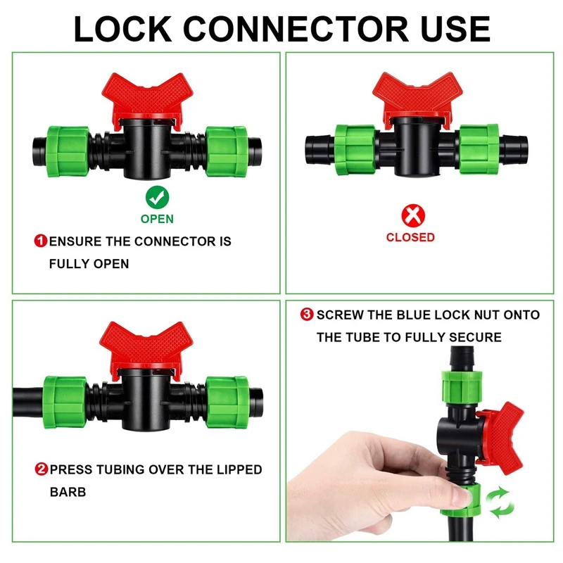 Отсутствие утечки: конец захватывает трубку для обеспечения надежного герметичного соединения, а Поворотный замок каждый раз добавляет фиксации трубке для надежного соединения; Давление воды: 30 дюймов широкое использование: соединительные клапаны трубы капельного орошения можно применять для различных случаев, таких как сельское хозяйство, газон, Орошение виллы и сада, приподнятые садовые грядки, жилые дома, фермы, теплицы, садоводство, сельскохозяйственный полив и т. д.