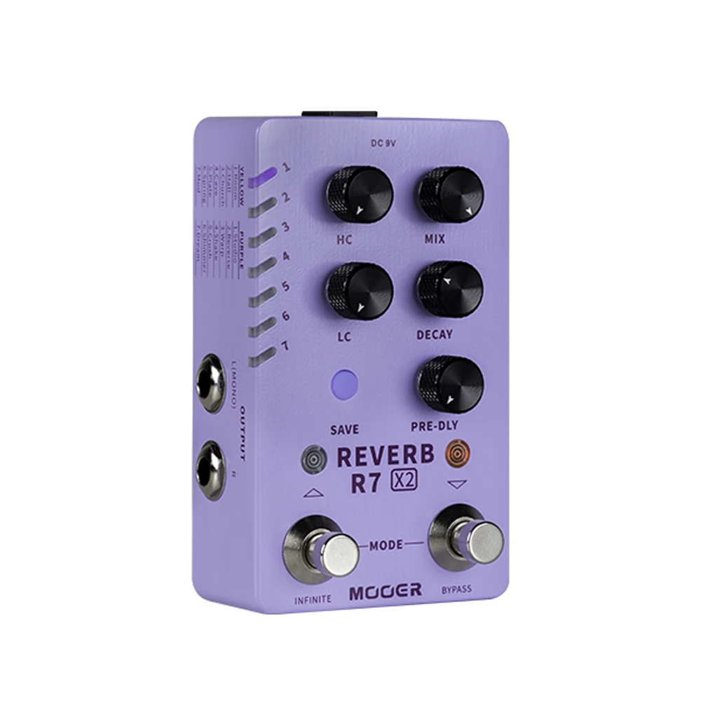 Моноблок R7 X2 с двойной педалью и стерео реверберами прекрасно сочетает всемирно известную новую мини-серию R7 и A7 в одном. Есть 14 стерео реверберации, которые отличаются от классических до современных. С точки зрения регулировки, в дополнение к широко используемому соотношению сухого и влажного смешивания (смешивание), затухание (затухание) и предварительная задержка (предварительная задержка), он также предоставляет два варианта высокой резки и низкой резки. Пользователи могут выбрать в соответствии с их собственным желанием, чтобы настроить мутный или чистый звук стерео реверберации.