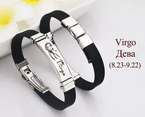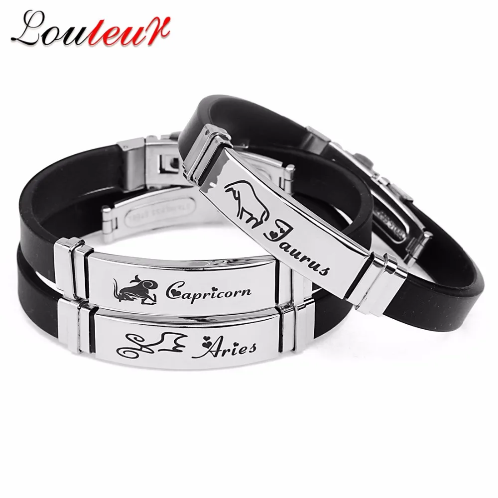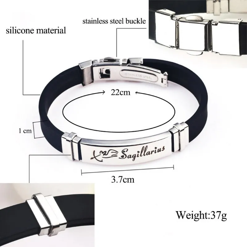 Силиконовый браслет с созвездием, регулируемый браслет из застежек из нержавеющей стали для мужчин и женщин, мужской браслет с знаками Зодиака