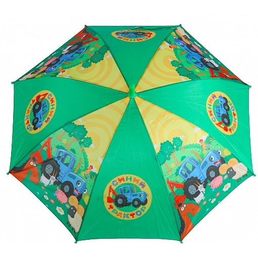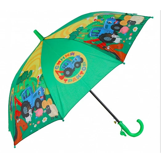 Яркий зонтик для маленького непоседы скрасит любую прогулку! Зонт украшен принтом в виде приключений веселого синего трактора. Сам зонт насыщенного зеленого цвета, поэтому надолго завладеет вниманием и интересом ребенка. У зонта удобная ручка-крючок. Легко складывается. Зонт выполнен из безопасных и нетоксичных для детского здоровья. Диаметр купола: 82 см.