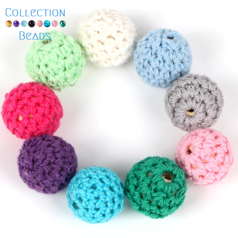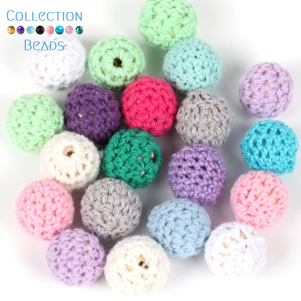 20 шт Плетеный абажур из натурального дерева крючком жевательные, бусины для изготовления украшений своими руками, деревянные игрушки-прорезыватели Вязание бусины ювелирных изделий для детской кроватки сенсорные Детская Игрушка прорезыватель 16 мм
