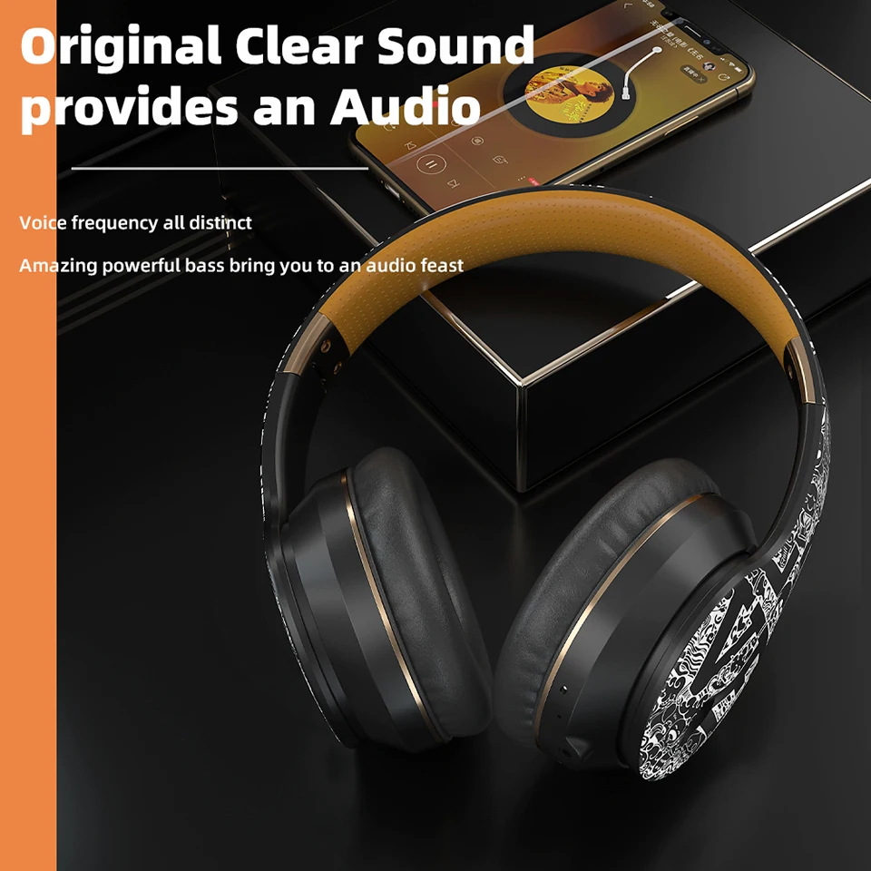Taida официальный Bluetooth 5,0 гарнитура складная граффити дизайн шумоподавление стерео бас наушники проводные TF карты наушники