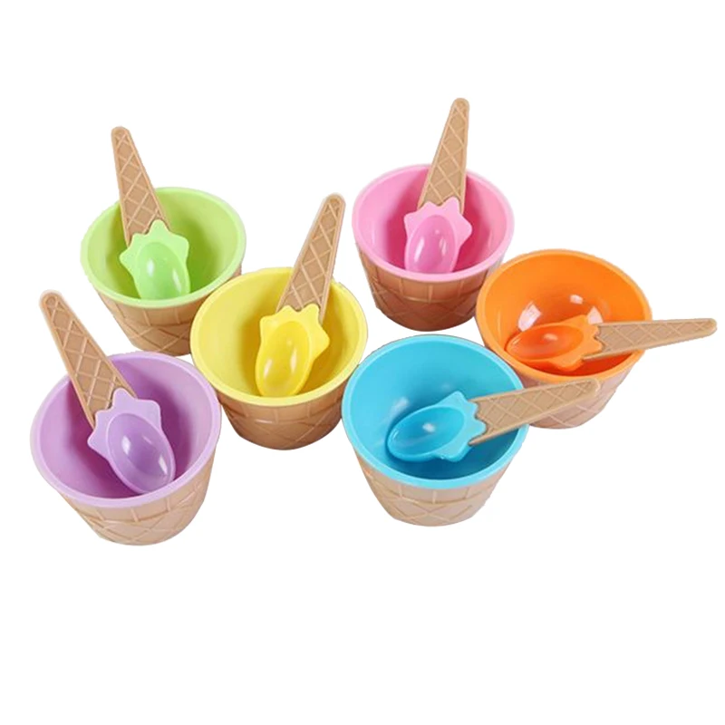 Набор ложек для мороженого конфетного цвета, многоразовый пластиковый десерт, миска для мороженого, детские подарки, милый набор инструментов для мороженого DIY