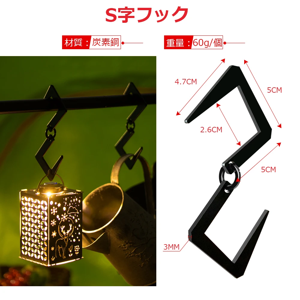 Различные функции: крюки для фонарей, сделанные в процессе резки. Прочный s-крюк для подвесных фонарей, печей, чайников и других передач может использоваться в сочетании с различными типами вешалок