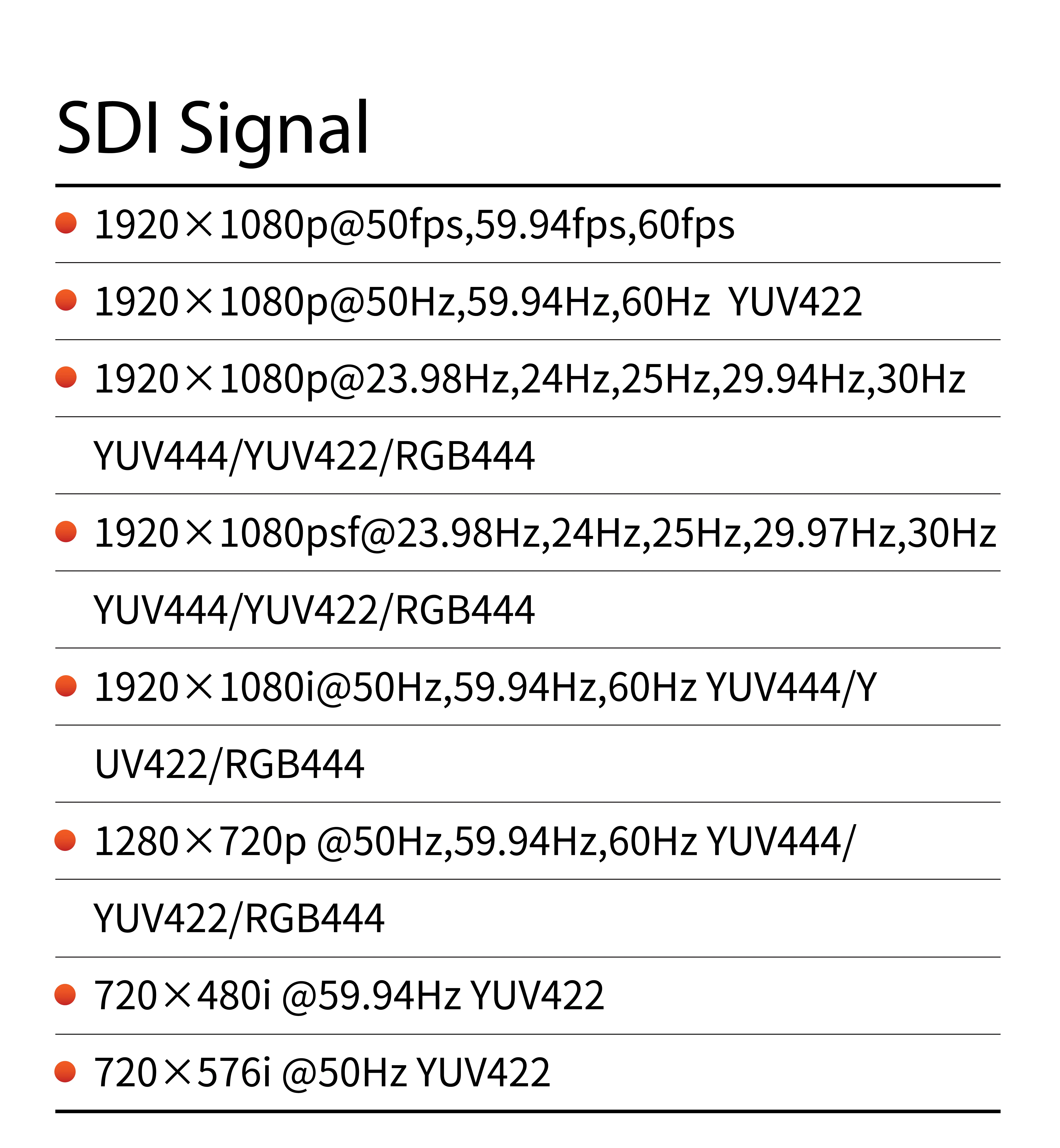 Поддержка 3D LUTs позволяет просматривать записи в выбранном Вами цветовом пространстве или палитре. Этот монитор включает в себя один 3G-SDI вход переменного тока, один 3G-SDI выход, один входной сигнал HDMI, один выход HDMI, 3,5 мм разъем для наушников аудио выход, И порт USB Type-a, используемый для загрузки 3D LUTs и для обновления программного обеспечения. Угол обзора 178 ° позволяет смотреть вне оси без изменения цвета и контрастности.