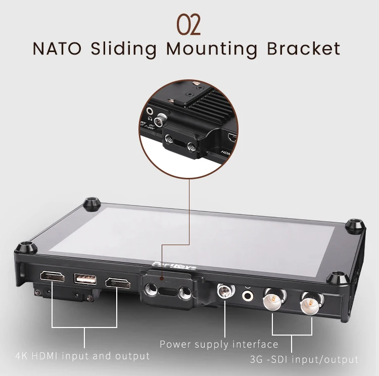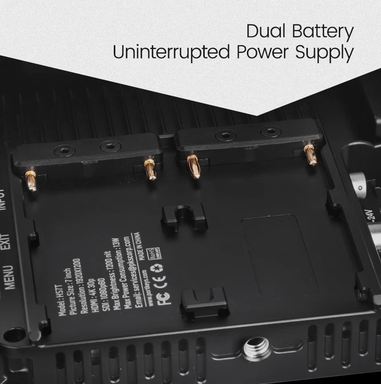 В HS7T Metal Edition сочетает в себе большой 7-дюймовый HDR экран с 1200nit Калиброванные пиковое значение яркости и легкий дисплей-только функцию оригинальный HS7T. В HS7T Metal Edition может использоваться при сильном светильник окружающей среды для того чтобы контролировать сигналов до 4K 60p через HDMI или SDI. Идеальный монитор режиссера, монитор фокуса, видеокоммутатор, очень подходит для видеоблоггеров, показывающих камеру.