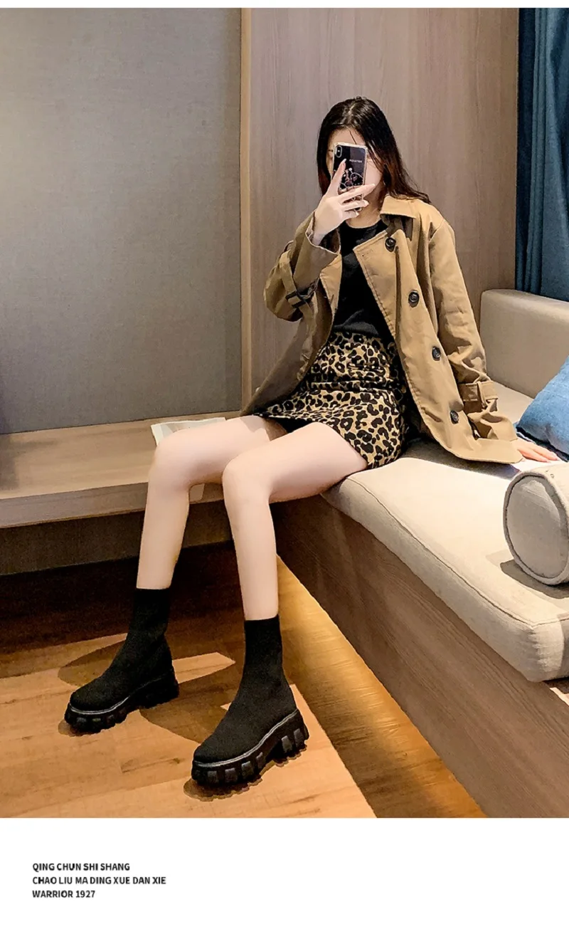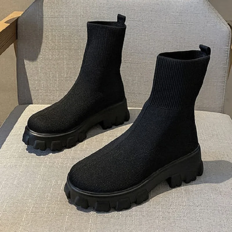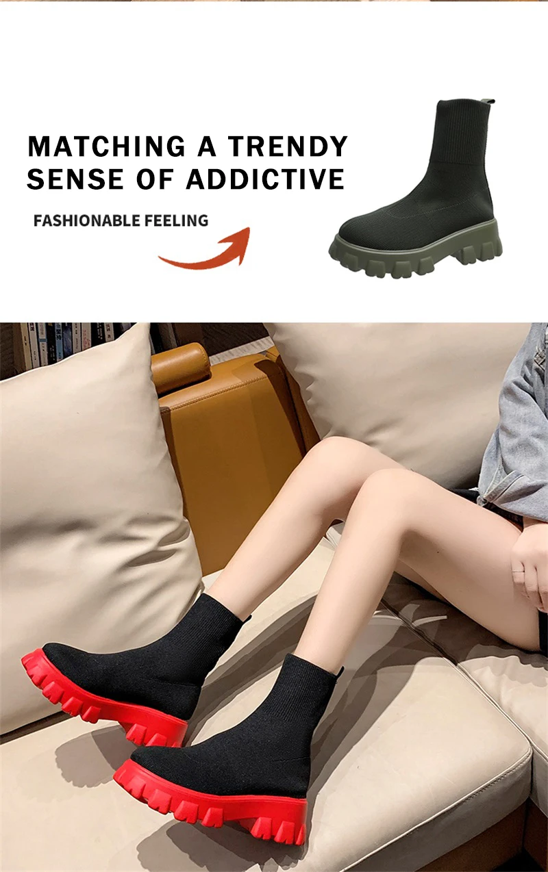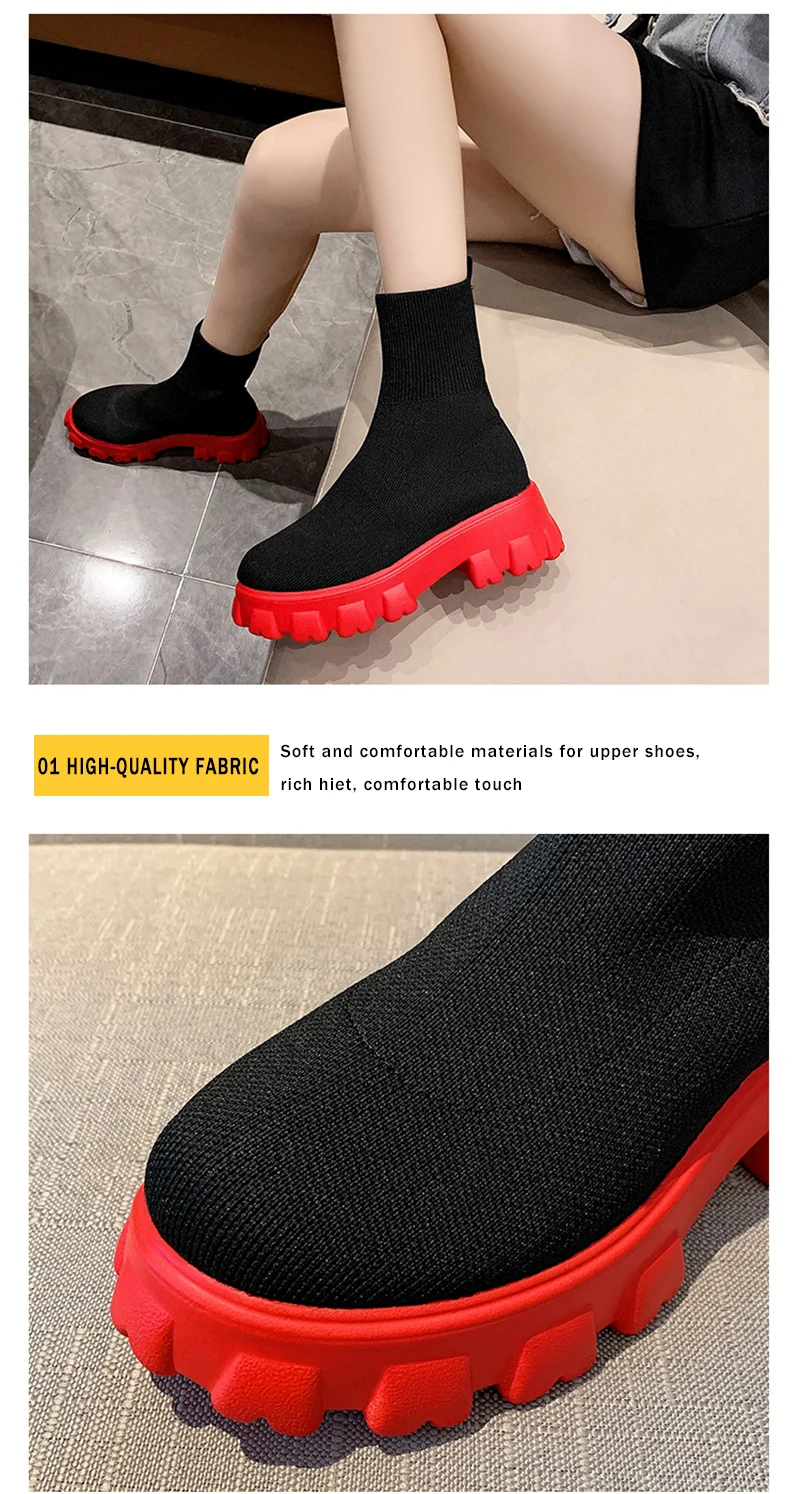 Новинка 2021 года; Сезон осень-зима; Пара носков; Женская обувь на толстой подошве; Повседневные вязаные короткие ботинки красного цвета; Большие размеры
