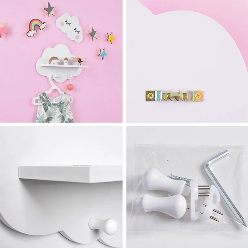 Эта полка для хранения с настенным креплением была спроектирована как облачная форма в ярком цвете без дополнительных вложений, применимых нескольких стилей.
