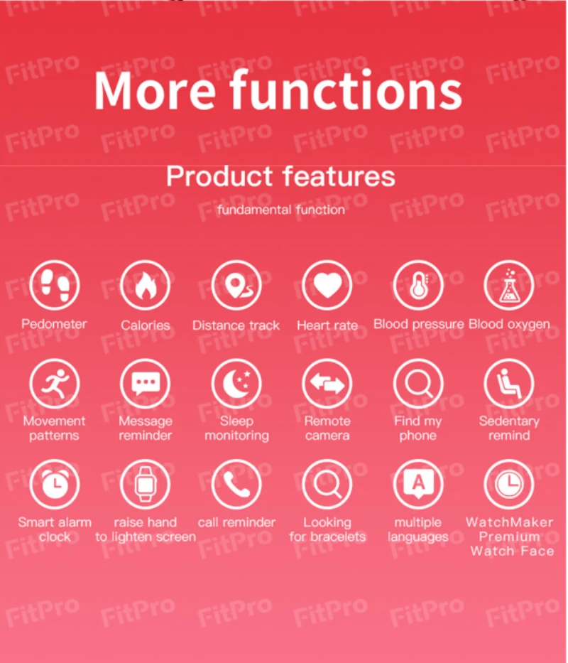 * Дополнительные функции: Поиск браслета, напоминание о тревоге, удаленная камера, поднимите руку, чтобы осветить, Управление музыкой, Погода
