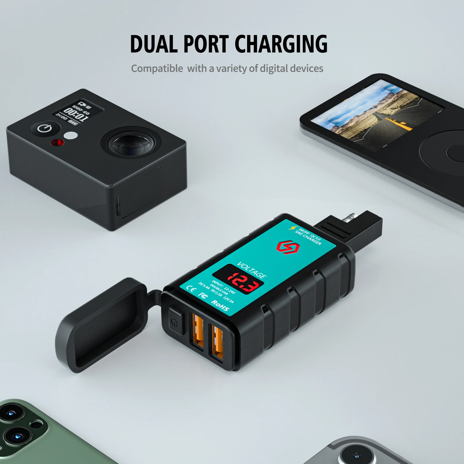 USB зарядное устройство для мотоцикла, водонепроницаемый Вольтметр для мотоцикла, мотоцикла, 12 В, блок питания, быстрая зарядка, двойной порт