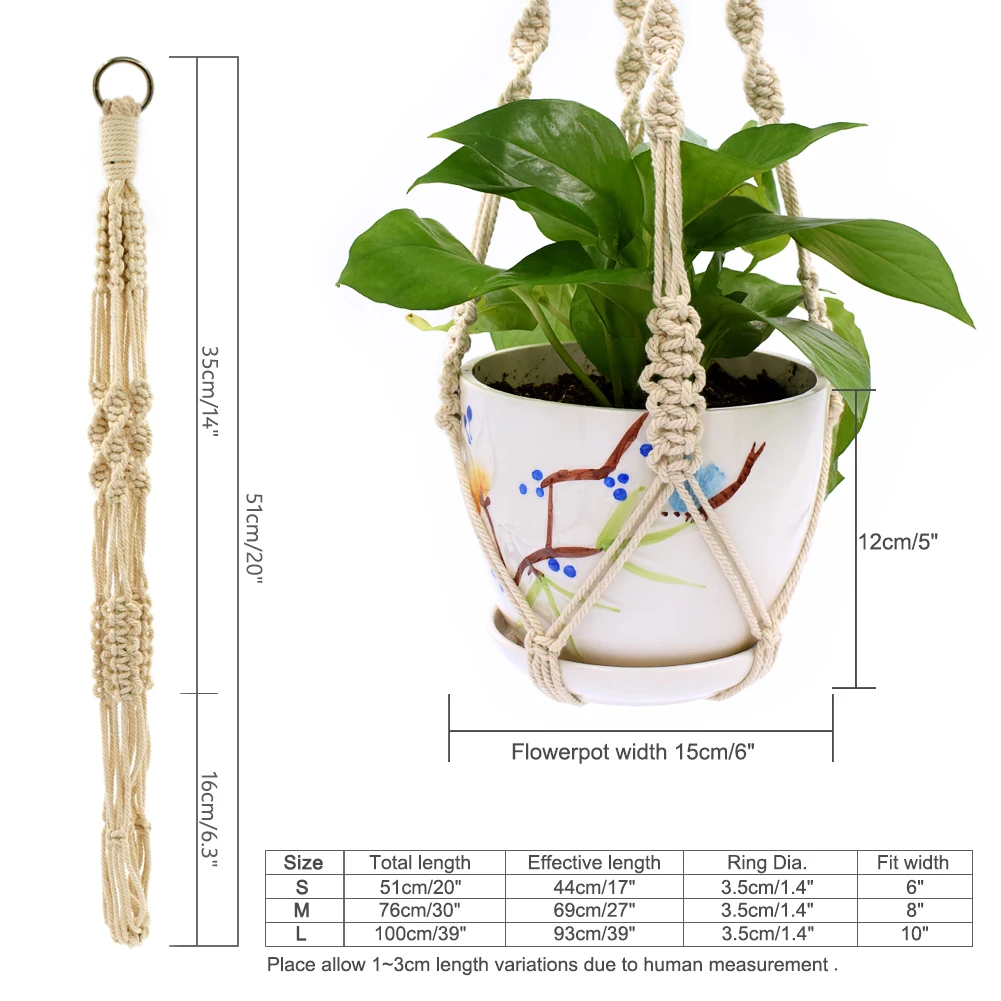 WITUSE Подвеска для растений из макраме горшок держатель ручной работы 100% прочная хлопковая нить Завод Вешалка подвесные корзины держатель простой/кисточкой 28/35/46"