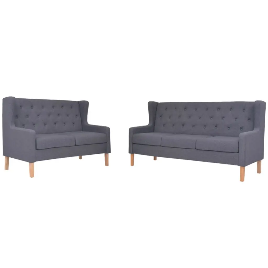 The sofa set is upholstered with soft polyester fabric and padded with foam for added comfort. With a solid wood frame, the sofa set is stable and durable. The assembly is very simple.