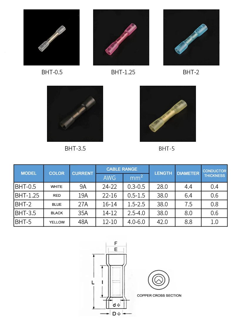10 Вт, 30 Вт, 50 шт. AWG 16-14 синий термоусадочные изолированные клеммы электрические разъемы проводов кабеля обжимной уплотнительная втулка терминалы